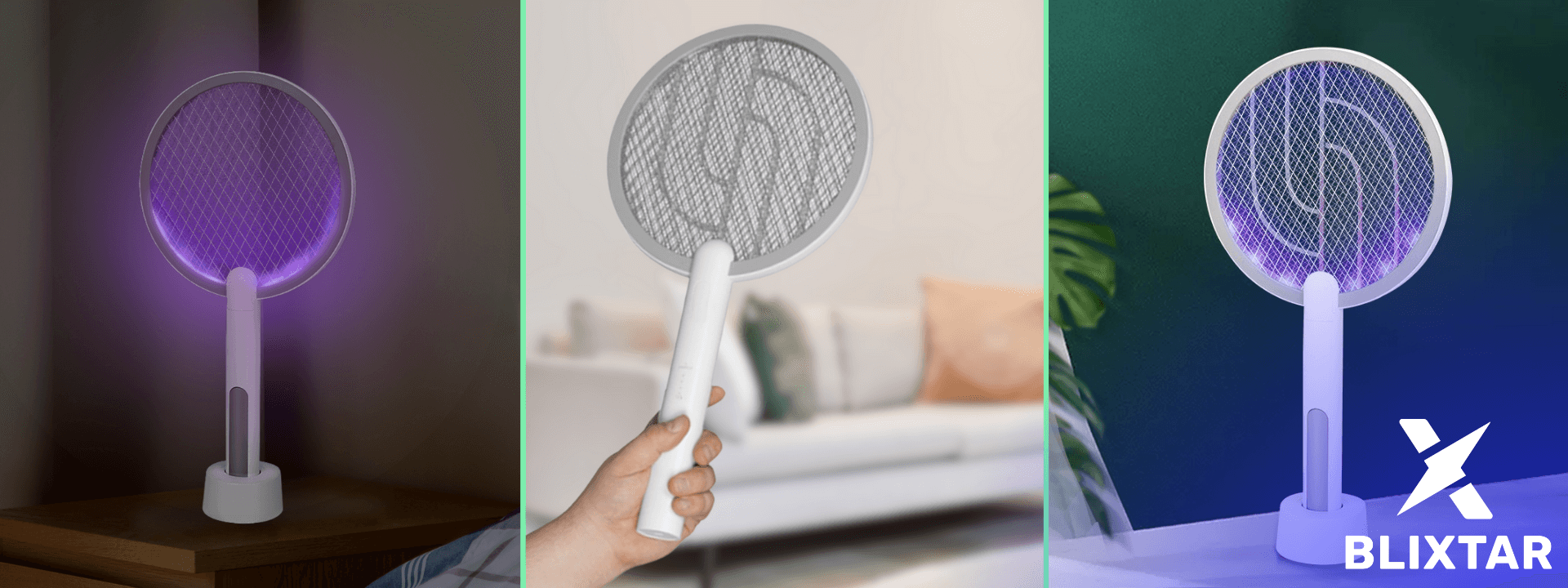Der elektrische Insektenfänger B-EZO-SWATTER von Blixtar ist eine zuverlässige Lösung, die Stechmücken, Fliegen, Wespen und andere fliegende Eindringlinge im Handumdrehen beseitigt.