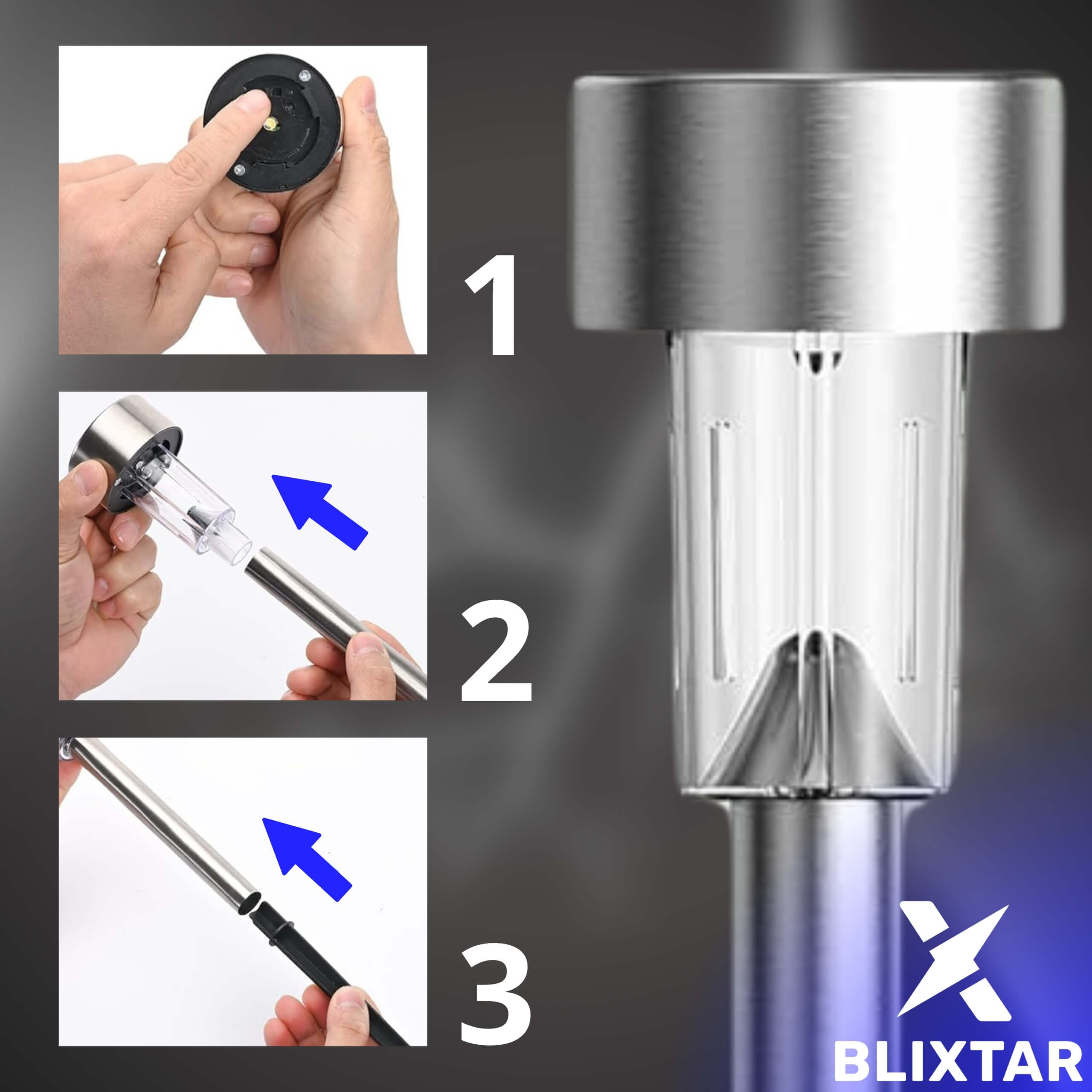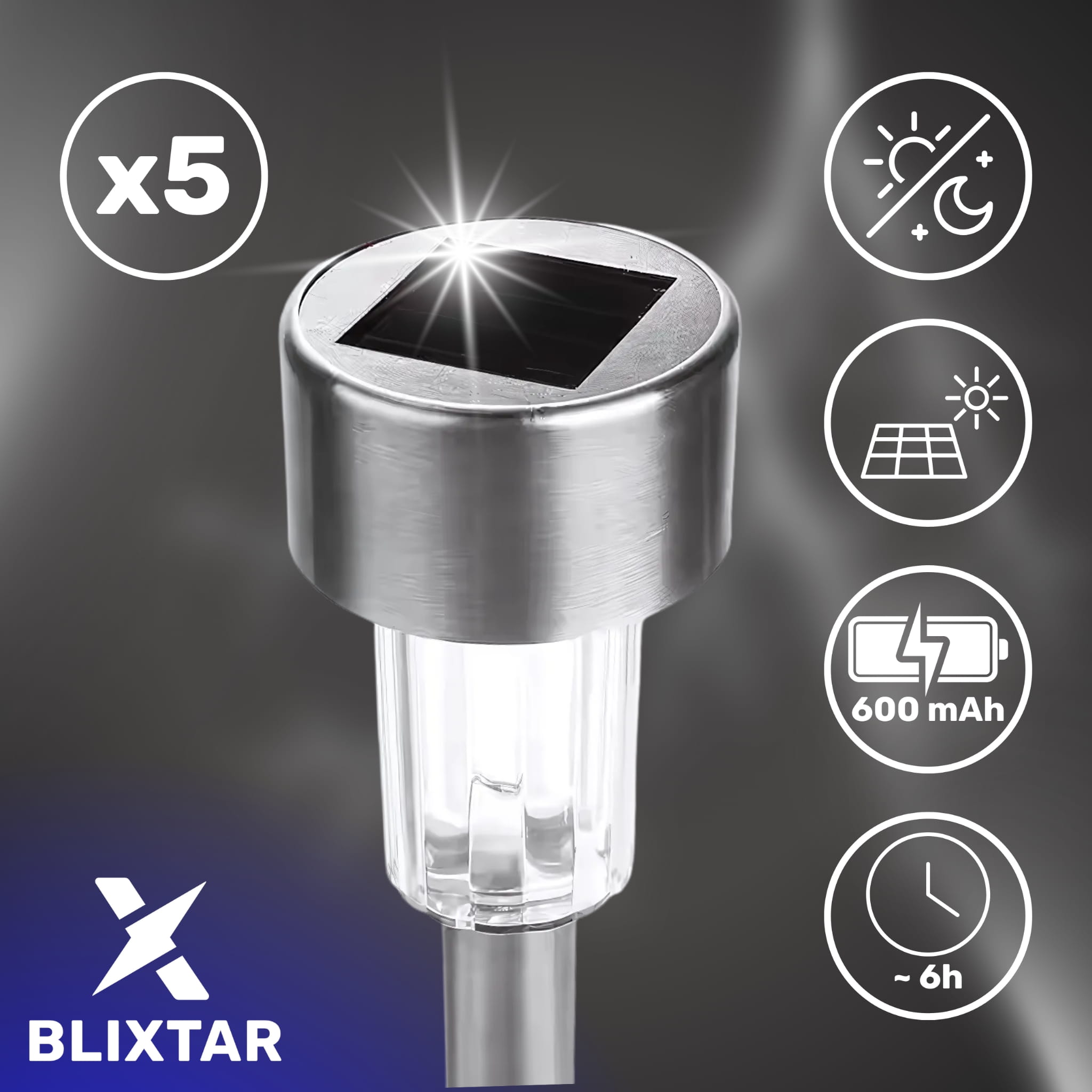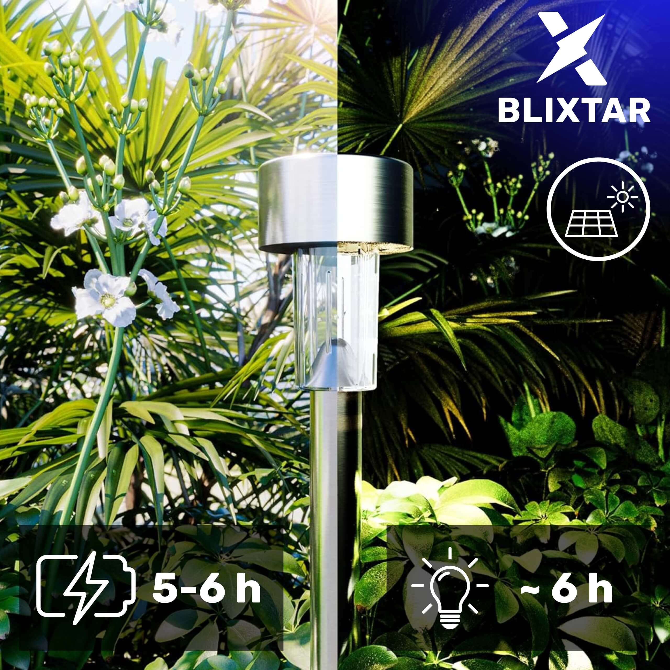 Die Solarlampe B-S-LAMP-STICK-5X von Blixtar ist ein größeres und haltbareres Modell als die Standardprodukte auf dem Markt. Aus rostfreiem Stahl gefertigt, ist sie witterungsbeständig und liefert lange Zeit helles Licht.