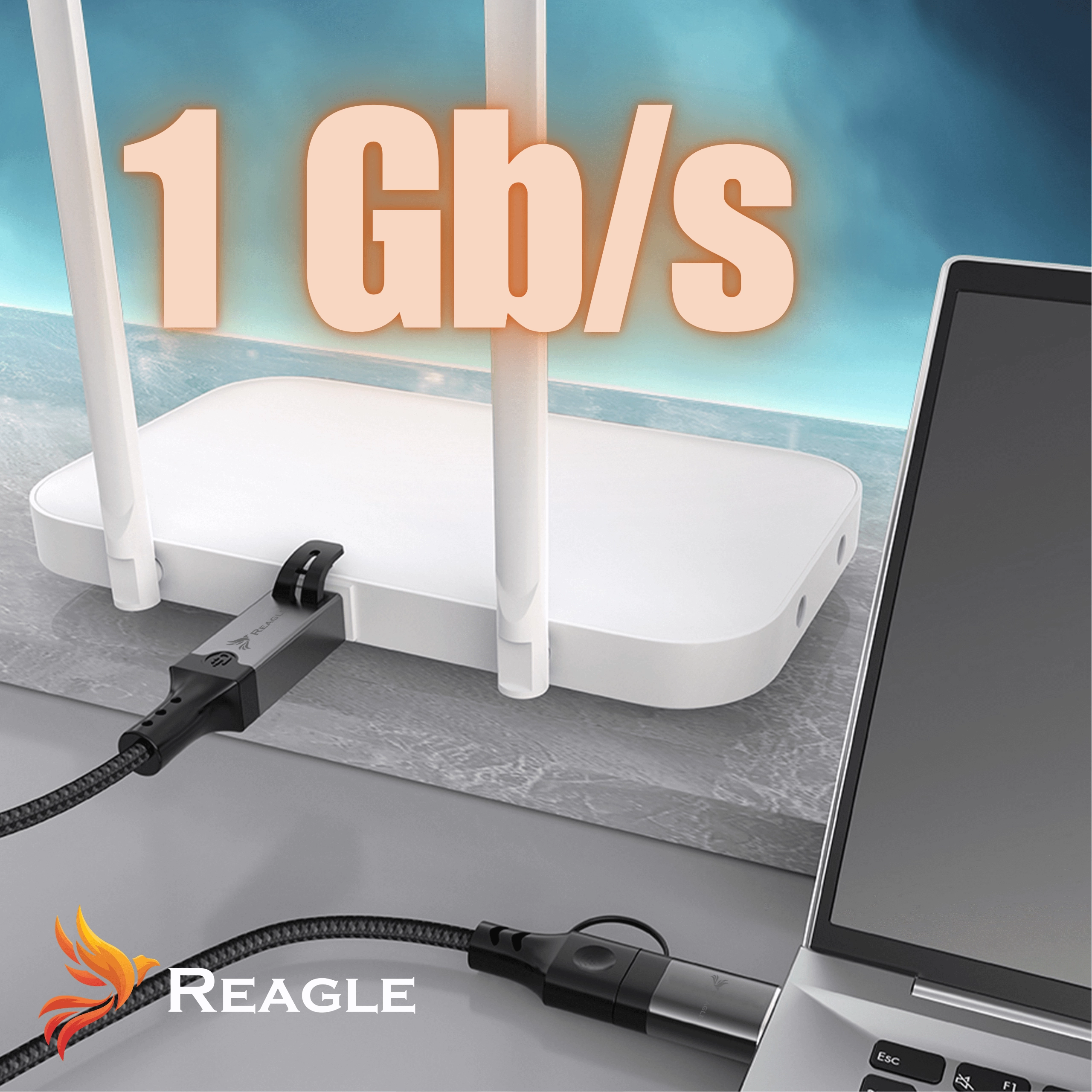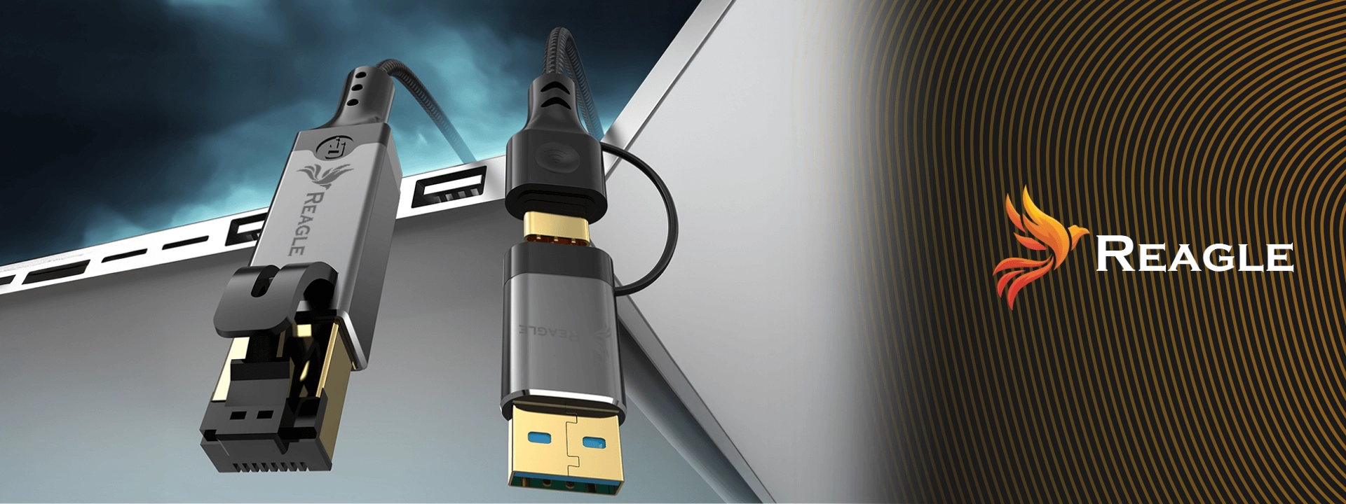 Das 2-in-1-USB-C-USB-A-auf-RJ45-Ethernet-Universal-Netzwerkkabel von Reagle RUARJ200M ist für eine stabile Verbindung zwischen Geräten mit USB-C/A-Anschluss und kabelgebundenen Netzwerken konzipiert.
