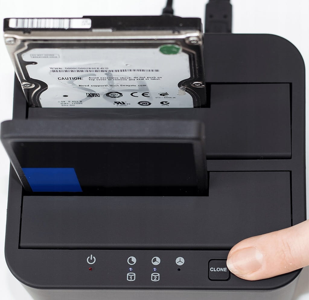 - Drücken Sie die Taste "Clone" für 3 Sekunden, die LED-Anzeige leuchtet auf. Drücken Sie dann schnell auf die Schaltfläche Offline-Klonen, woraufhin der Offline-Klonvorgang gestartet wird. Jede LED steht für 25% Fertigstellung. Wenn der Offline-Klonvorgang abgeschlossen ist, leuchten alle LEDs kontinuierlich.