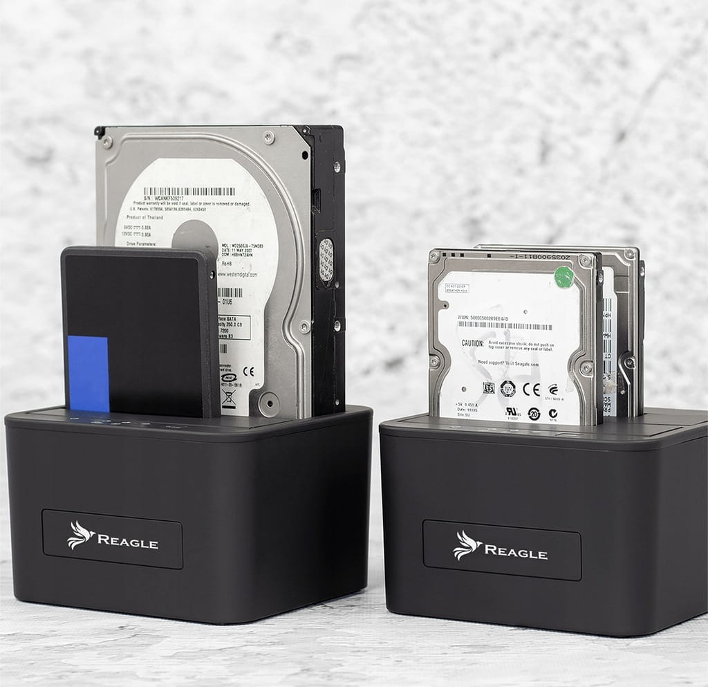 Sie müssen sich keine Sorgen mehr über mangelnden Speicherplatz machen, denn die Reagle-Dockingstation unterstützt Festplatten mit einer Kapazität von bis zu 16 TB und bietet Ihnen die Möglichkeit, direkt vom System aus auf Ihre Daten zuzugreifen. Sie brauchen keinen Computer, um das Laufwerk zu klonen, da die Station Offline-Klonen auf Knopfdruck unterstützt. Sie brauchen auch keine Treiber zu installieren, die Station arbeitet mit plug and play technology - you plug and play.