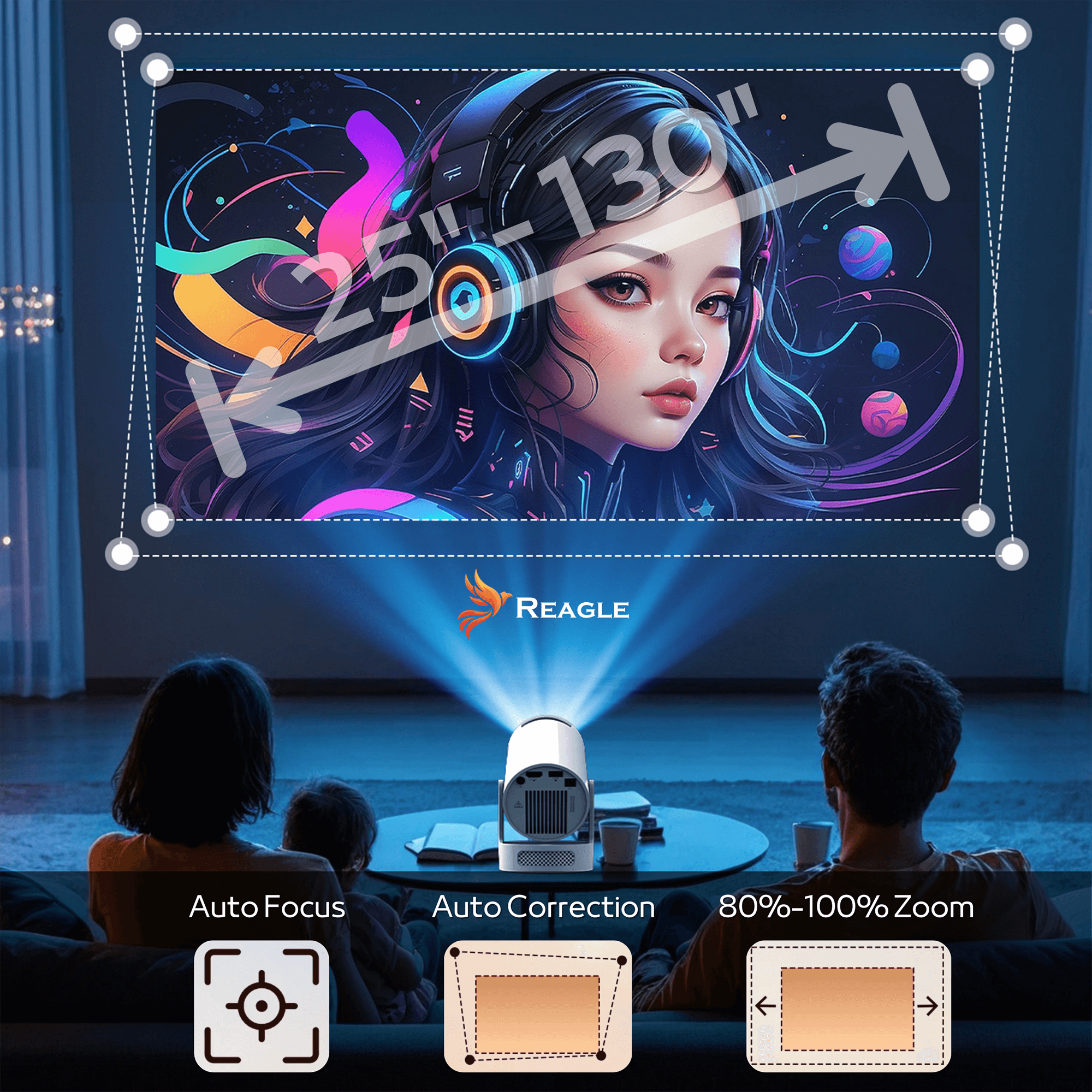 - Kurze Brennweite - großes Bild auch aus 0,5 Metern Entfernung! Sehen Sie sich Filme und Zeichentrickfilme auf einem großen Bildschirm an, selbst in einem kleinen Raum.