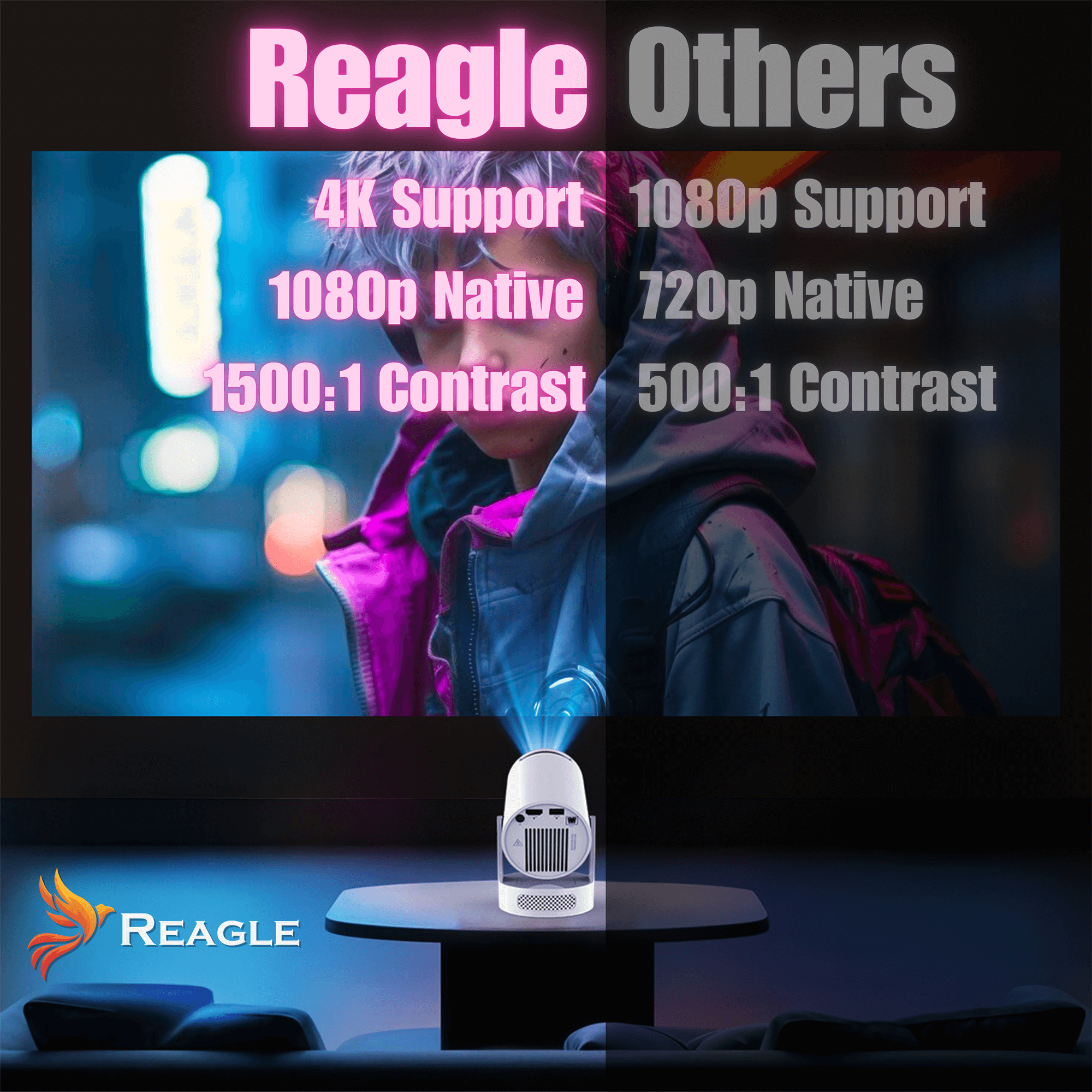 Im Gegensatz zu vielen konkurrierenden Projektoren mit veraltetem Android 11 und nur 1 GB RAM, bietet der R-MOVIELUM-P10 von Regle :