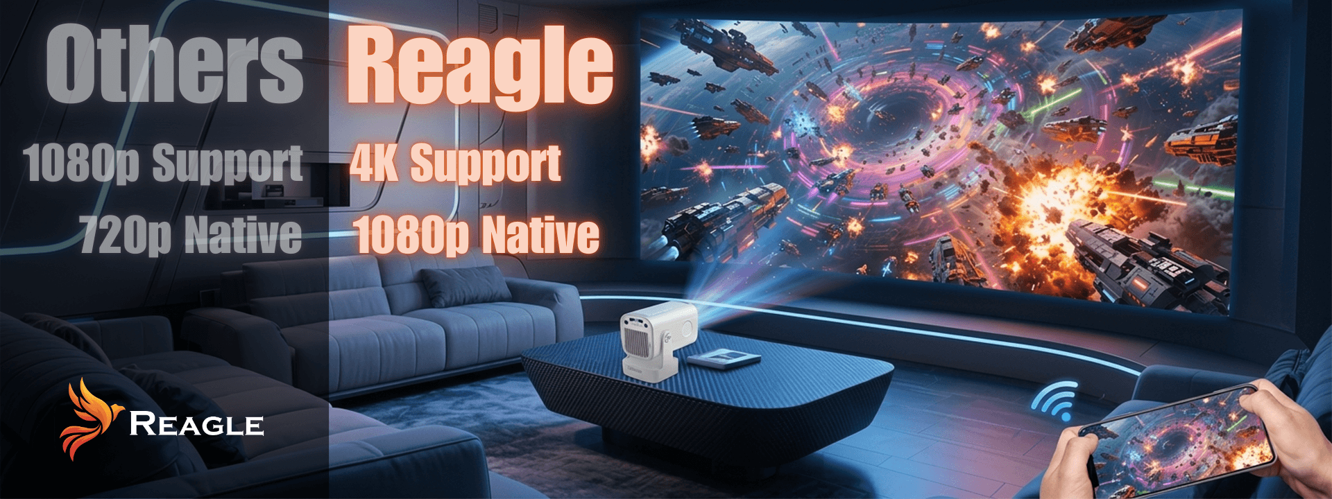 Der R-MOVIELUM-P30 von Reagle bietet nicht nur außergewöhnliche Bildqualität in nativem Full HD (1920x1080p), sondern auch Autofokus, Trapezkorrektur, kompakte Größe, Skalierung auf 4k und Unterstützung für beliebte Streaming-Apps - alles, was Sie für Ihr Heimkino oder Ihre Präsentation unterwegs brauchen!