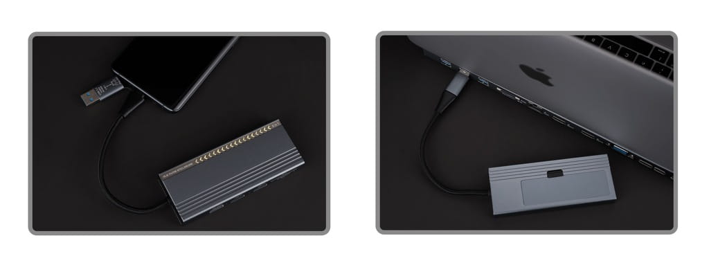 - 2-in-1-Gerät - dient gleichzeitig als multifunktionaler USB-Hub und Laufwerksgehäuse