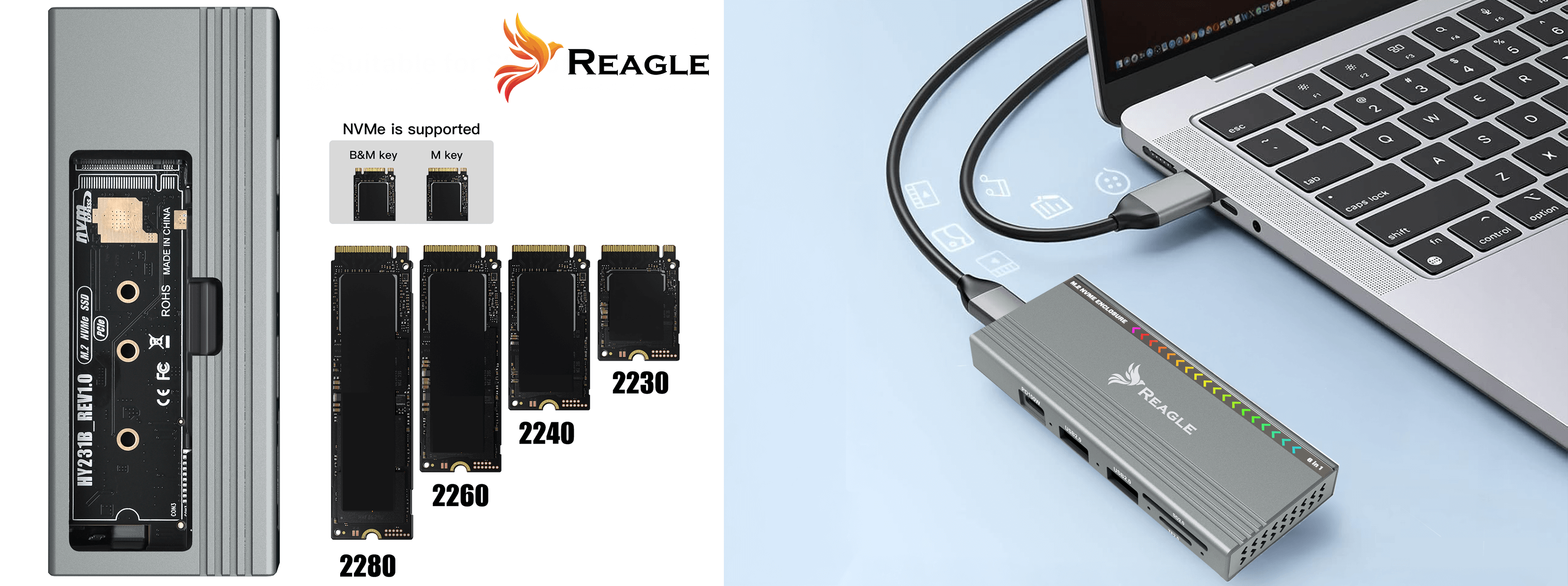 REAGLE Hub-Gehäuse für NVME SATA M.2 SSD USB-C 3.2 M2 Adapter Tasche