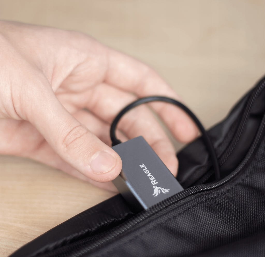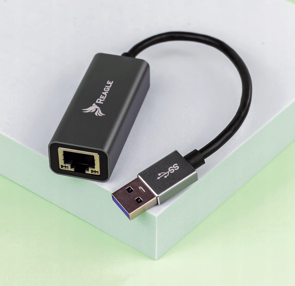 Die RACRJ5 von Reagle ist eine Netzwerkkarte, die den Anschluss eines Ethernet-Kabels an einen USB-A-Port ermöglicht.
