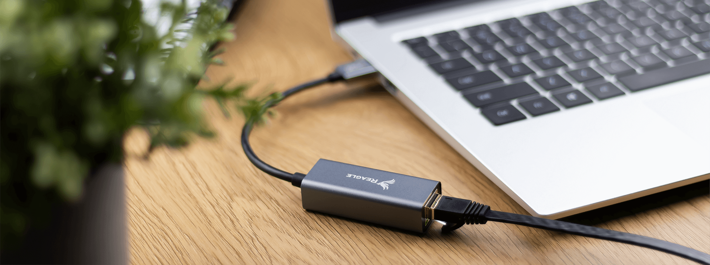 Eine drahtlose Netzwerkverbindung ist sehr praktisch, da Sie nicht durch die Länge eines Internetkabels eingeschränkt sind. Allerdings kann Wi-Fi unzuverlässig sein, und bei neuen Laptops fehlt oft ein RJ-45-Anschluss. Mit dem Netzwerkadapter RYCRJ5 von Reagle ist das kein Problem - mit ihm verbinden Sie ein Ethernet-Kabel mit einem USB-A-Anschluss.