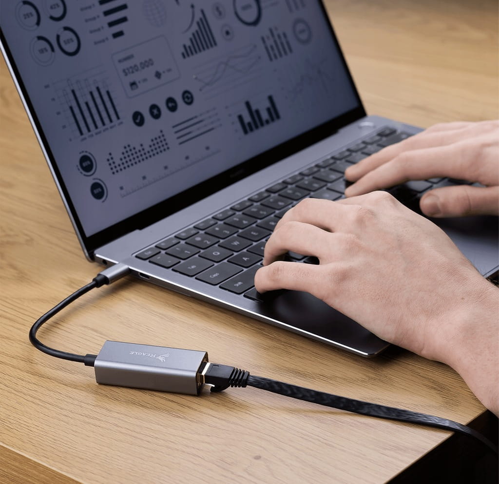 Die drahtlose Vernetzung ist sehr praktisch, da Sie nicht durch die Länge eines Internetkabels eingeschränkt sind. Mit dem Netzwerkadapter RYCRJ5 von Reagle ist das kein Problem - mit ihm schließen Sie ein Ethernet-Kabel an einen USB-C-Anschluss an.