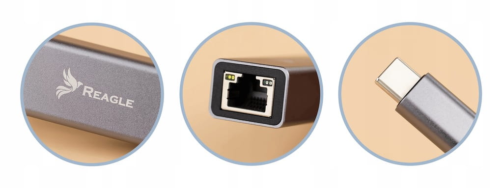 RYCRJ5 von der Marke Reagle ist ein Netzwerkadapter, mit dem Sie ein Ethernet-Kabel an einen USB-C-Anschluss anschließen können.