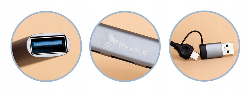 Die Produkte von Reagle zeichnen sich durch eine hervorragende Verarbeitungsqualität aus. Der Hub hat ein Aluminiumgehäuse und eine kleine Standfläche, so dass Sie ihn überallhin mitnehmen können, ohne Kratzer befürchten zu müssen. Er benötigt keine zusätzliche Stromversorgung, so dass Sie keine zusätzlichen Kabel benötigen.
