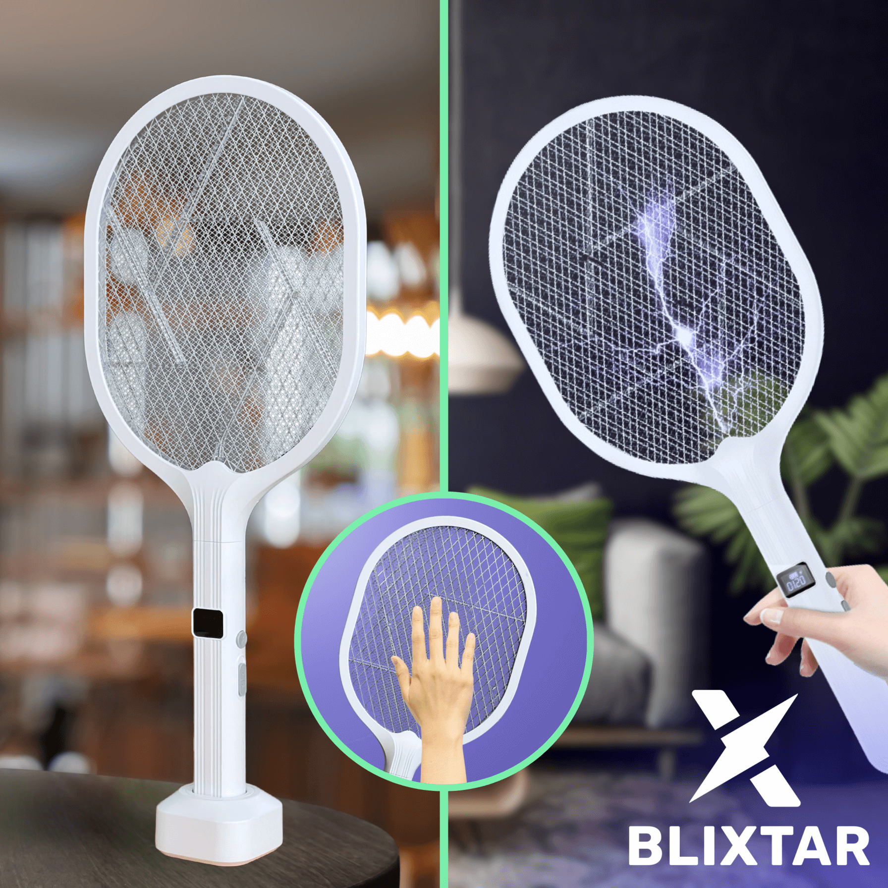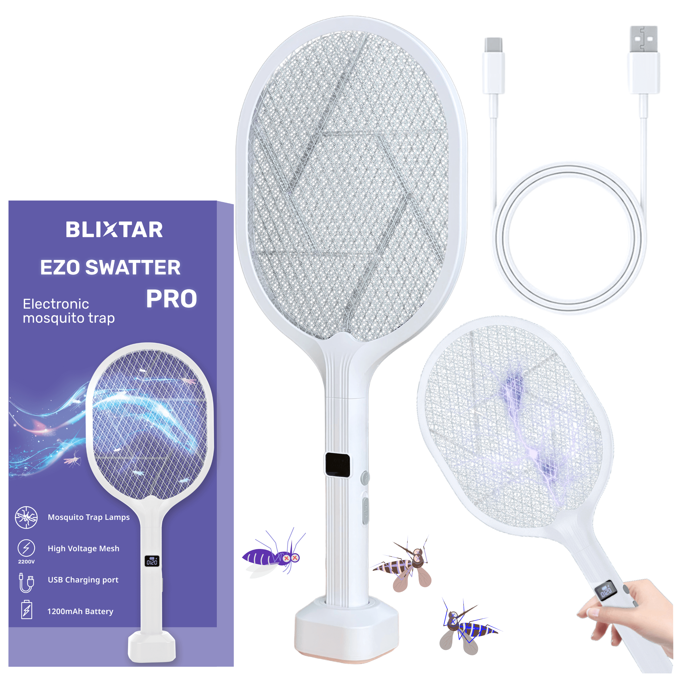 Forget about nuisance mosquitoes and flies! The B-EZO-SWATTER-PRO from Blixtar is a state-of-the-art 2-in-1 electric paw that effectively fights flying insects by acting as both a hand-held pouch and a stationary insecticide lamp.