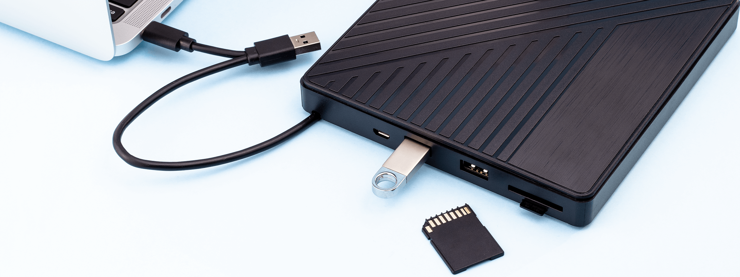You don't have to worry about the compatibility of the drive with your hardware, as it is extremely versatile. It has USB-A and USB-C connectors, so you can connect it to both your desktop computer and your MacBook. It is compatible with Windows, Mac OS and Linux. The drive operates on the SuperSpeed USB 3.2 Gen 1 standard and transfers files at a maximum speed of 5 Gbps. The presence of 2 USB-A 2.0 ports , as well as SD and micro SD card readers, turns the device into a multi-functional accessory with the ability to connect power to a micro USB port.