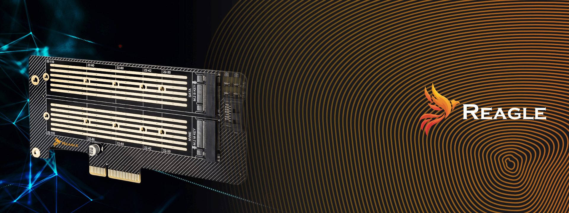 Podwójny adapter RY6NVME od Reagle SSD PCIe x4/x8/x16 pozwala Ci jednocześnie zamontować dysk M.2 NVMe oraz M.2 SATA w komputerze. To proste i wygodne rozwiązanie, które maksymalnie wykorzystuje potencjał Twojego sprzętu – z prędkością nawet 64 Gb/s!