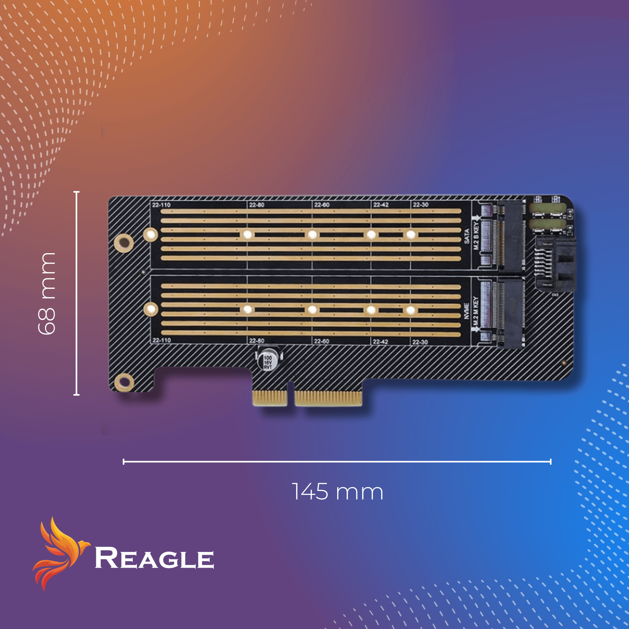 ADAPTER DYSKU SSD M.2 KARTA PRZEJŚCIÓWKA PCIe 4.0 X4 64Gbps 2w1 NVME SATA REAGLE