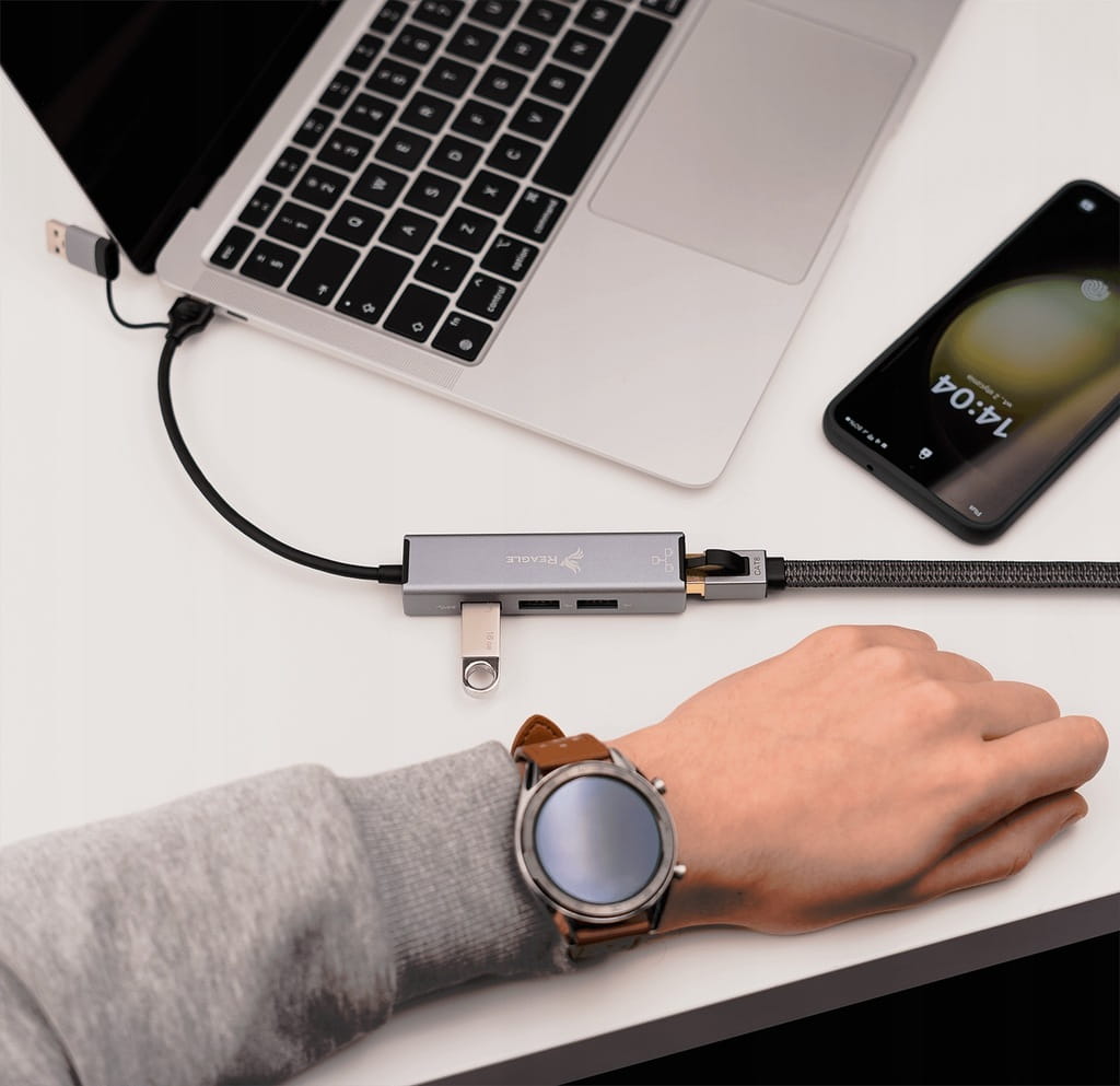Gdy potrzebujesz stabilnego łącza, ale brakuje Ci w urządzeniu portu RJ-45 - z kartą sieciową RYACRJ5 od Reagle rozwiążesz ten problem. Dzięki dwóm wtykom USB-C i USB-A, karta sieciowa zapewnia wszechstronność i kompatybilność z różnymi urządzeniami. Niezależnie od tego, czy korzystasz z najnowszego laptopa z portem USB-C, czy też tradycyjnego komputera z USB-A, ten adapter sprawi, że przesyłanie danych stanie się efektywne i szybkie z transferem do 100 Mbps.