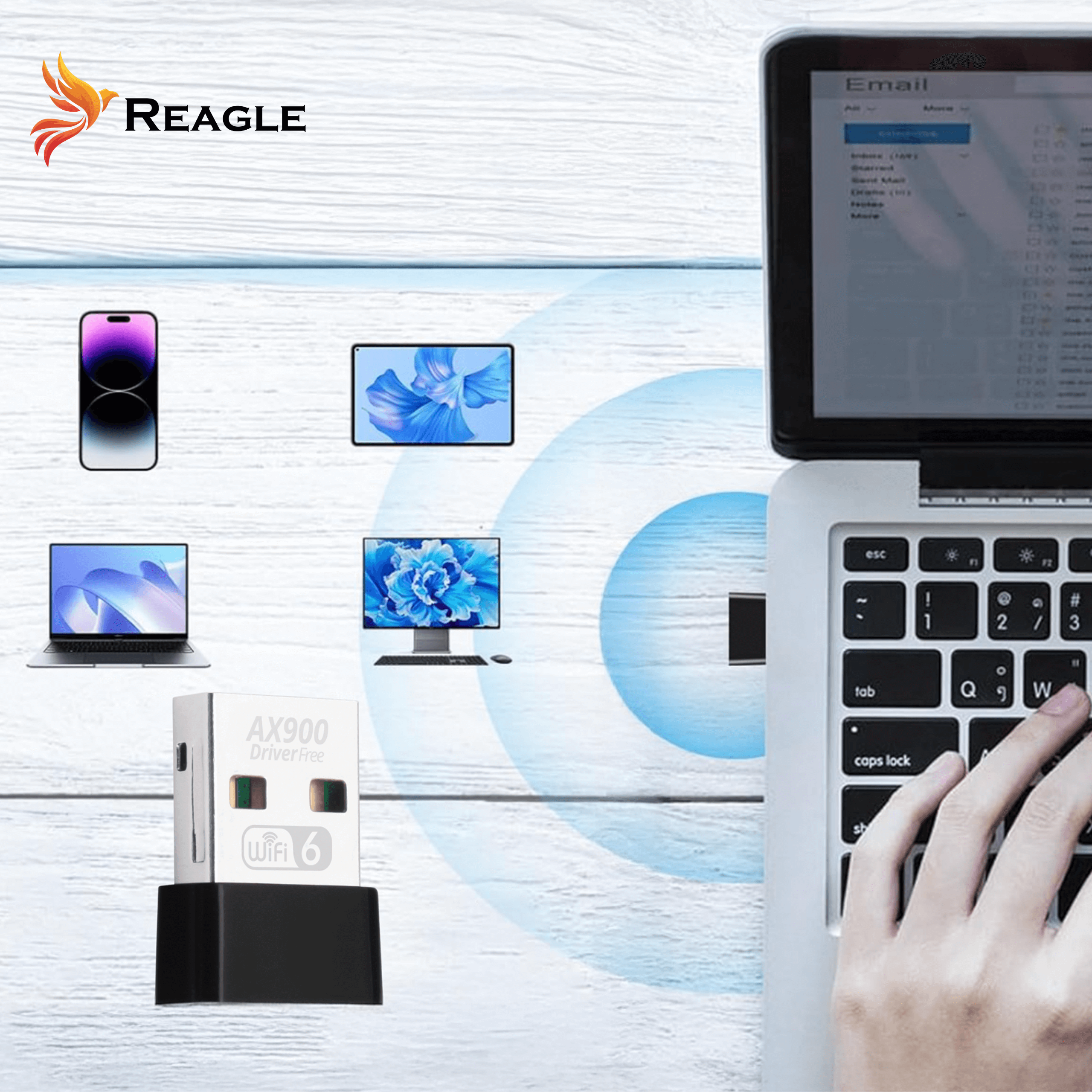 Adapter WiFi 6 USB RYWU4 od Reagle to kompaktowe, ale niezwykle wydajne rozwiązanie dla każdego, kto oczekuje stabilnego i szybkiego połączenia z siecią. Dzięki obsłudze dwóch pasm i prędkości do 900 Mb/s sprawdzi się w pracy, rozrywce i podróży.