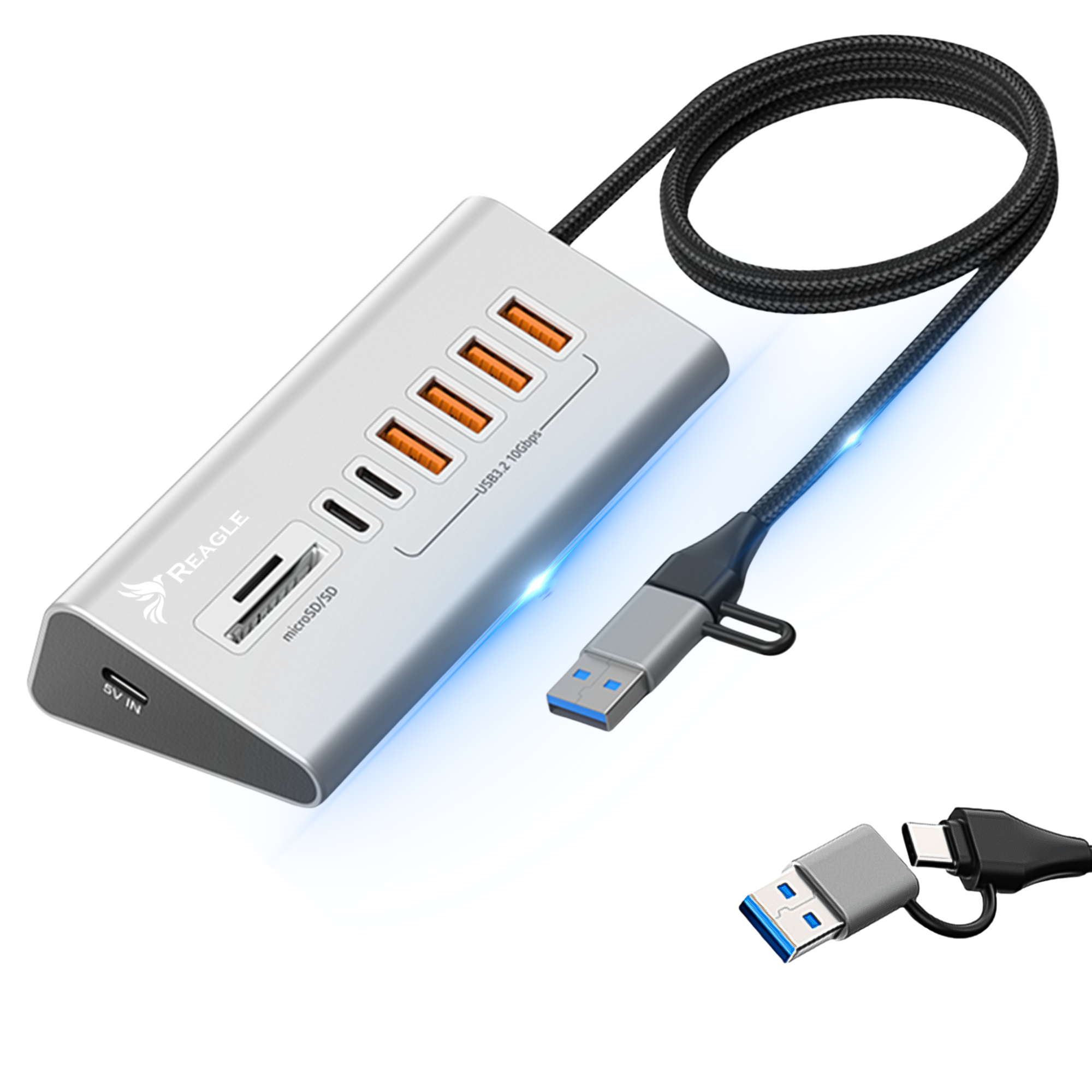 Model RHUB67AC to Twoje osobiste centrum połączeń, stworzone z myślą o wygodzie i wydajności. Wyposażony w 6 portów USB oraz czytnik kart microSD, SD i TF, pozwala na szybki transfer danych, ładowanie urządzeń i obsługę akcesoriów – wszystko w jednym, kompaktowym hubie. Idealny do pracy biurowej, domowej i mobilnego użytkowania.