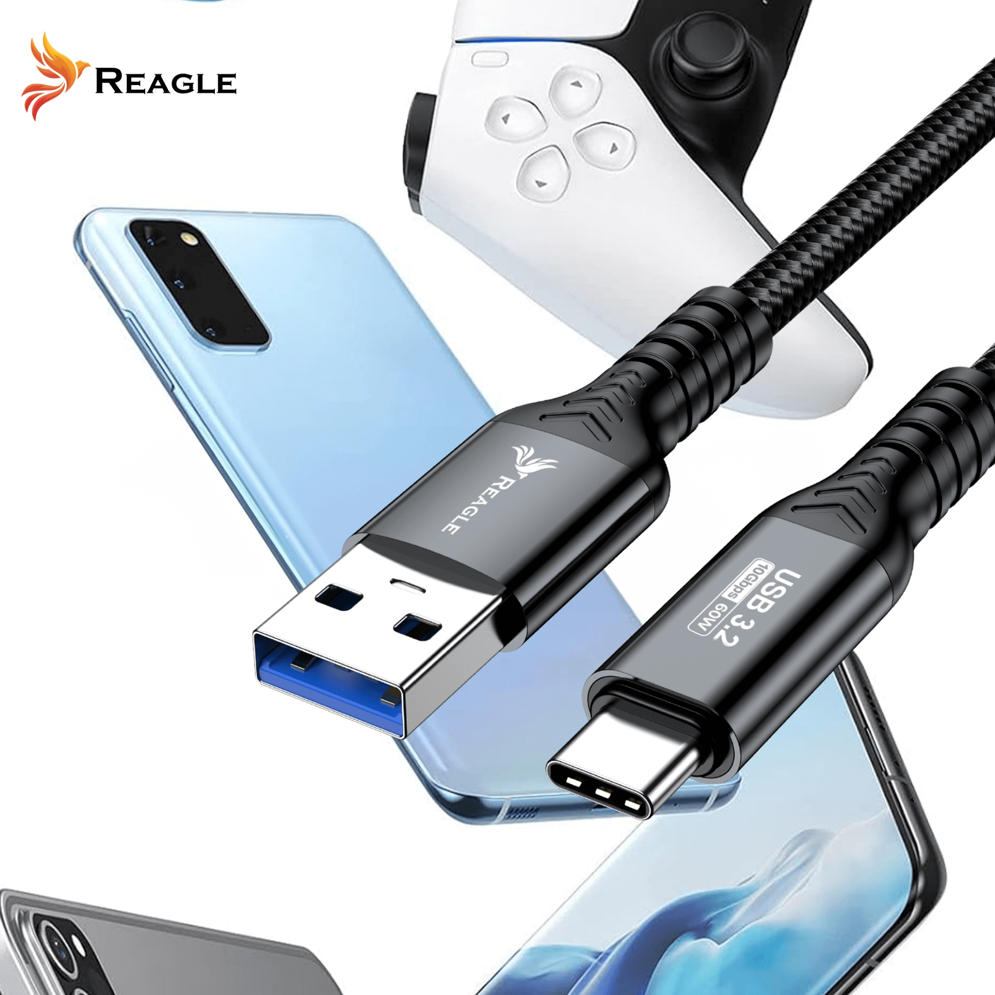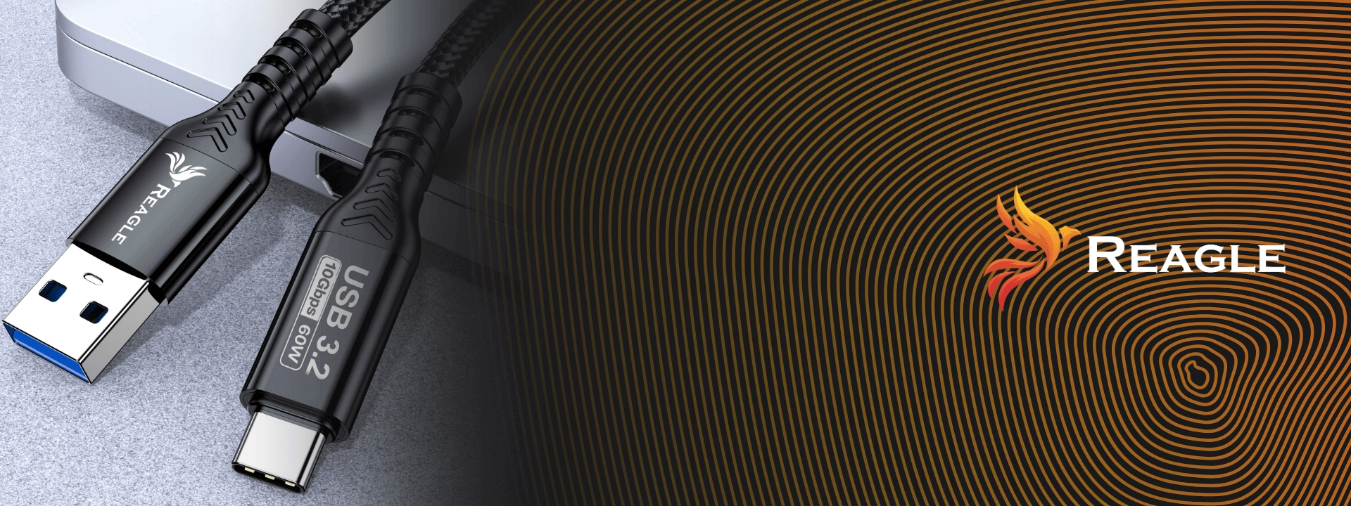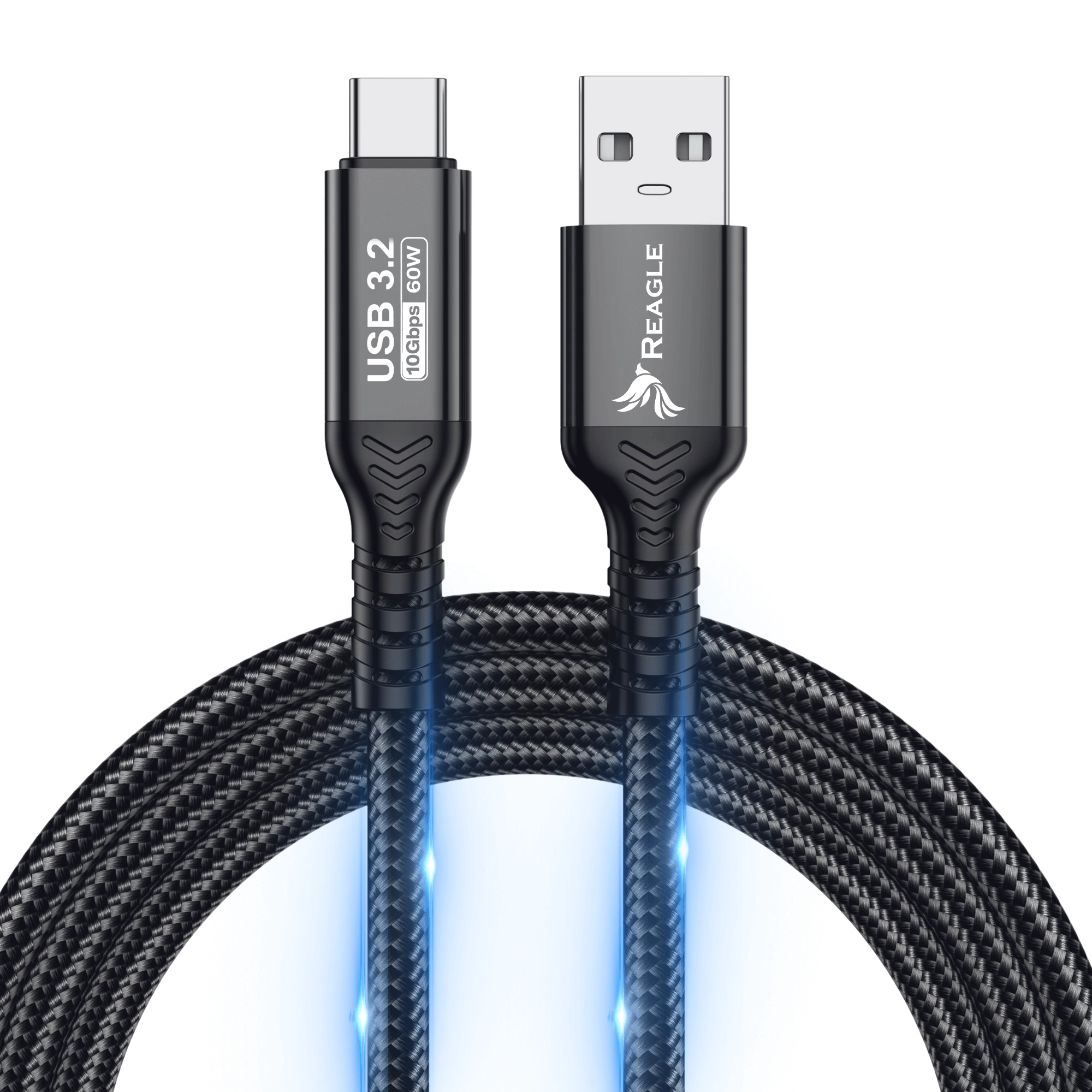 Dzięki technologii USB 3.2 Gen 2 kabel Reagle umożliwia przesył danych z prędkością do 10 gigabitów na sekundę.