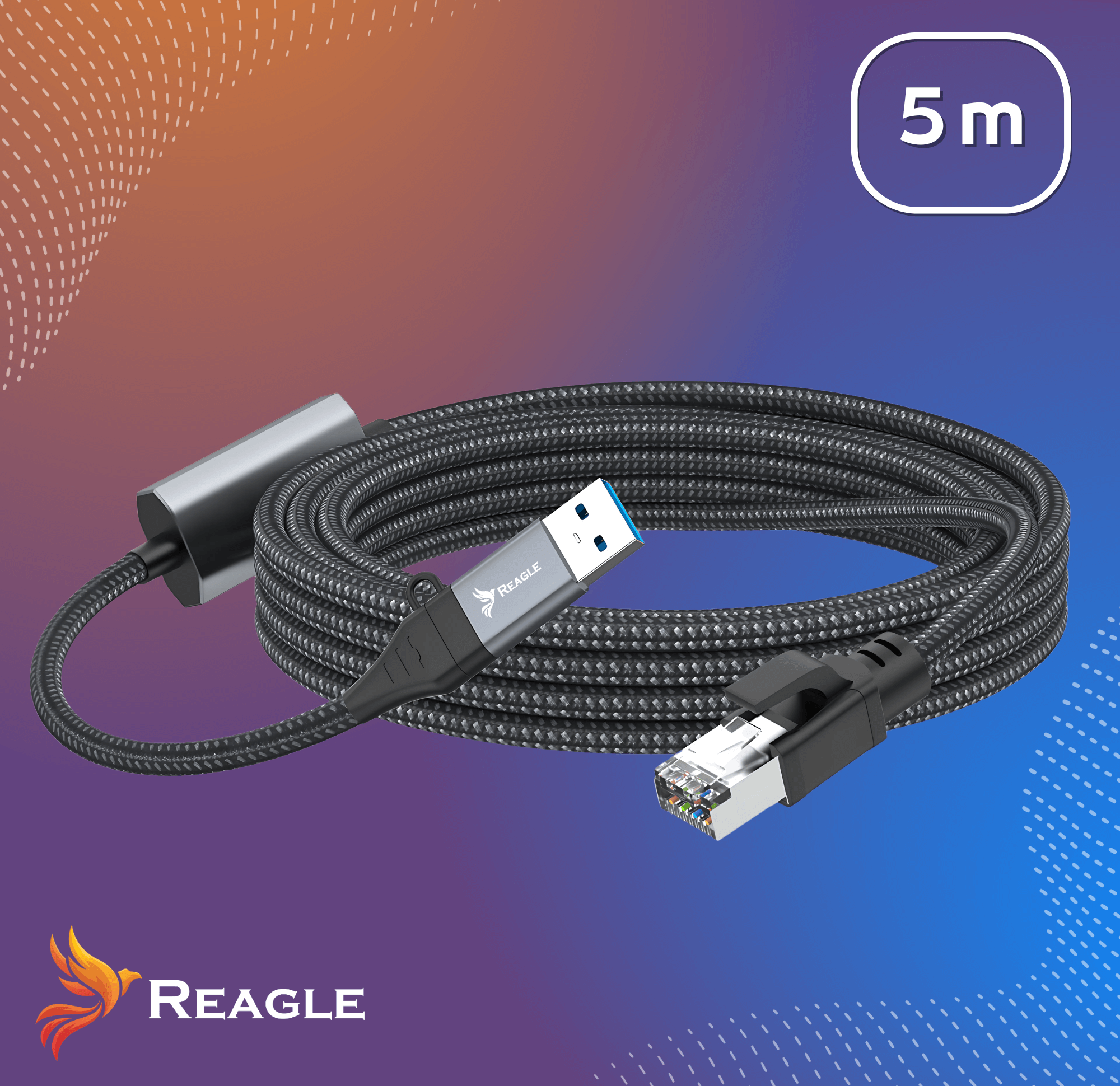 Uniwersalny kabel sieciowy 2w1 USB-C USB-A do RJ45 Ethernet od Reagle RUARJ500P został zaprojektowany z myślą o stabilnym połączeniu między urządzeniami na port USB-C/A i sieciami przewodowymi.