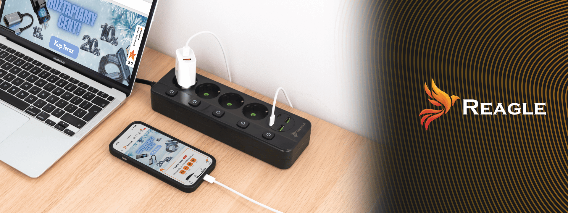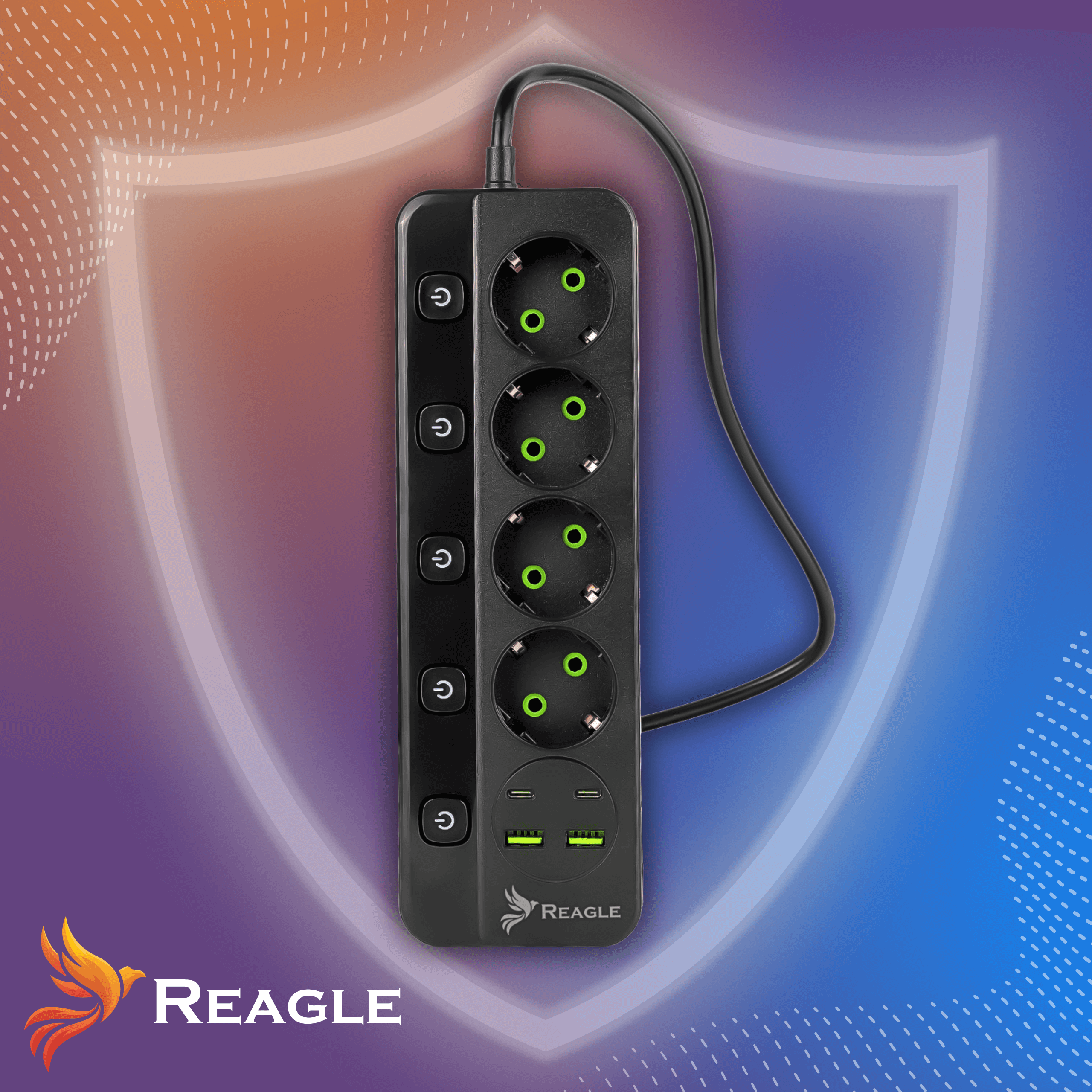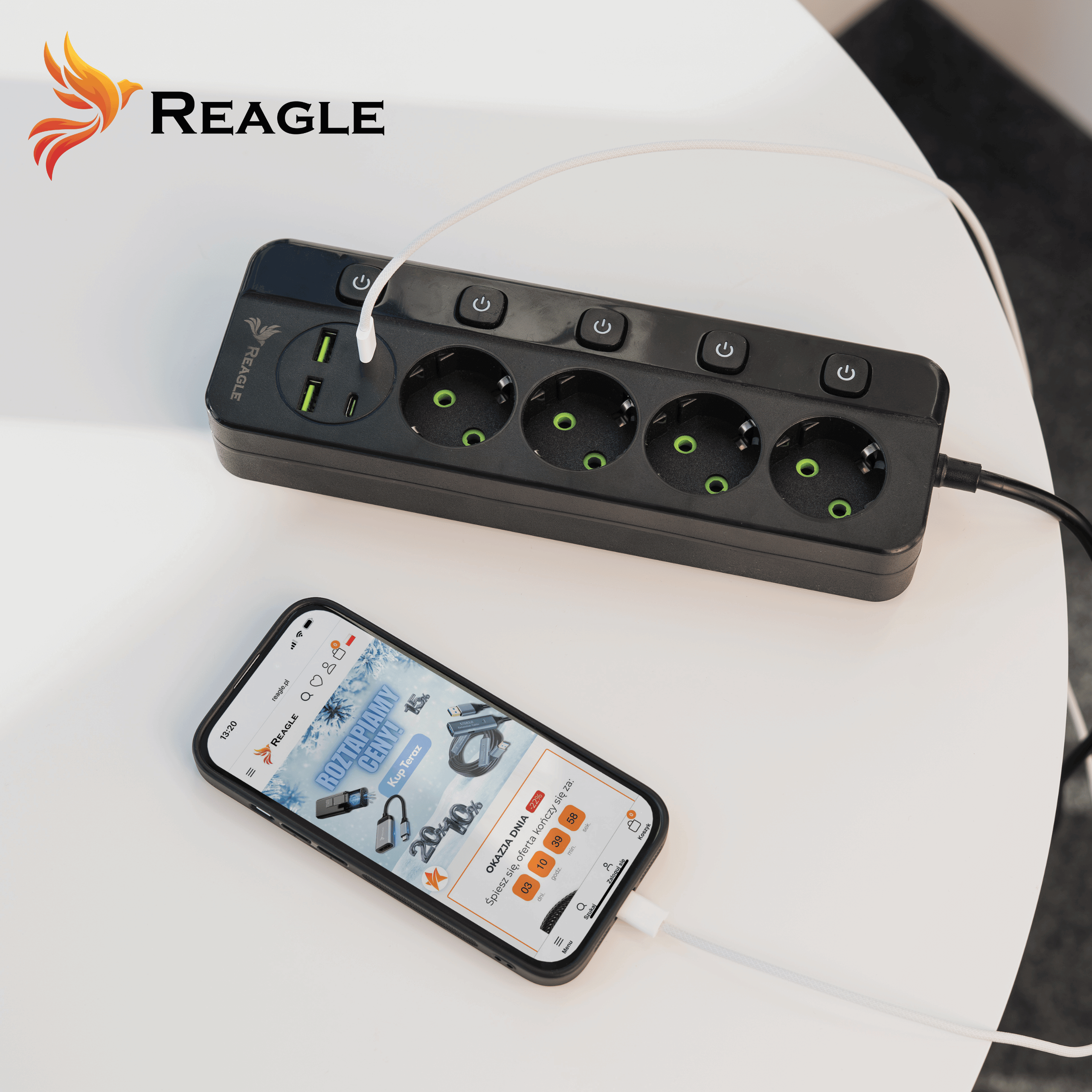 Listwa zasilająca Reagle RSTRIP41 to idealne połączenie funkcjonalności i bezpieczeństwa. Dzięki 4 gniazdom 230 V oraz 4 portom USB (2×USB-A + 2×USB-C), możesz jednocześnie zasilać urządzenia elektryczne i ładować sprzęt mobilny – bez konieczności używania dodatkowych ładowarek.