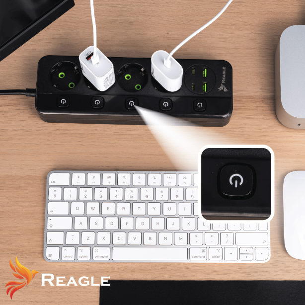 Listwa zasilająca Reagle została zaprojektowana z myślą o pełnej ochronie użytkownika i podłączonego sprzętu.