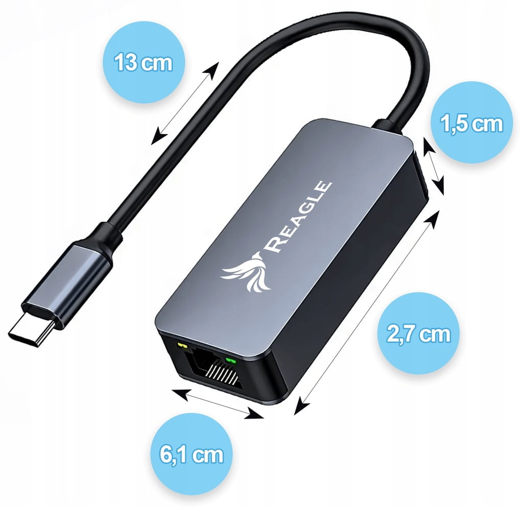 Przejściówka USB-C Ethernet Adapter Karta Sieciowa Lan RJ45 2,5gb/S 2.5g