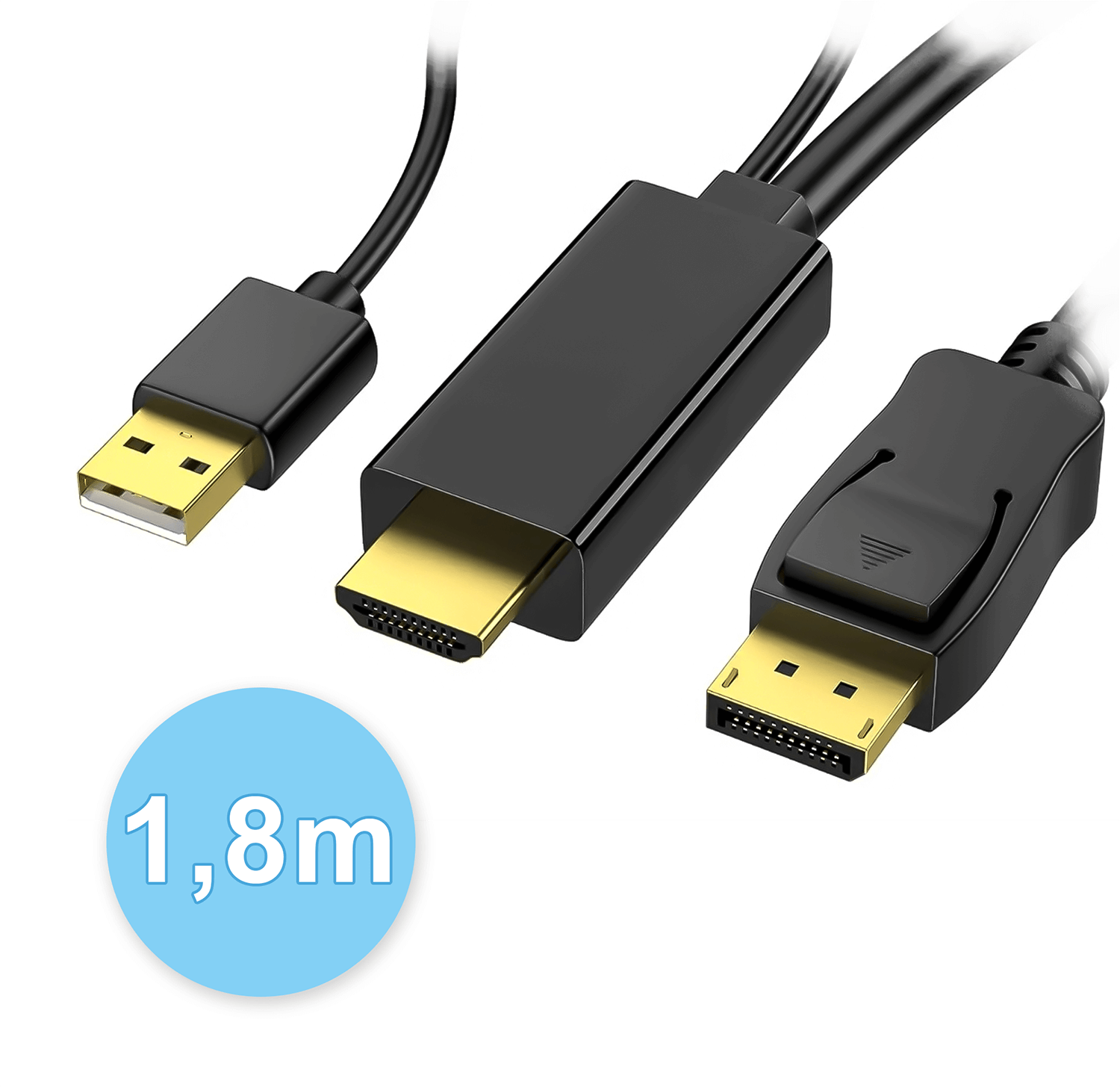 Reagle RHD180M to jednokierunkowy kabel konwerter HDMI do DisplayPort o długości 1,8 m. Obsługuje obraz w jakości 4K przy 60Hz, FullHD do 240Hz i 1440p do 144Hz, gwarantując płynność i wyraziste kolory w grach, filmach i pracy graficznej. Dzięki zintegrowanemu zasilaniu USB-A działa stabilnie nawet przy najwyższych częstotliwościach. Idealny do laptopów, konsol i odtwarzaczy HDMI podłączanych do monitorów DisplayPort.