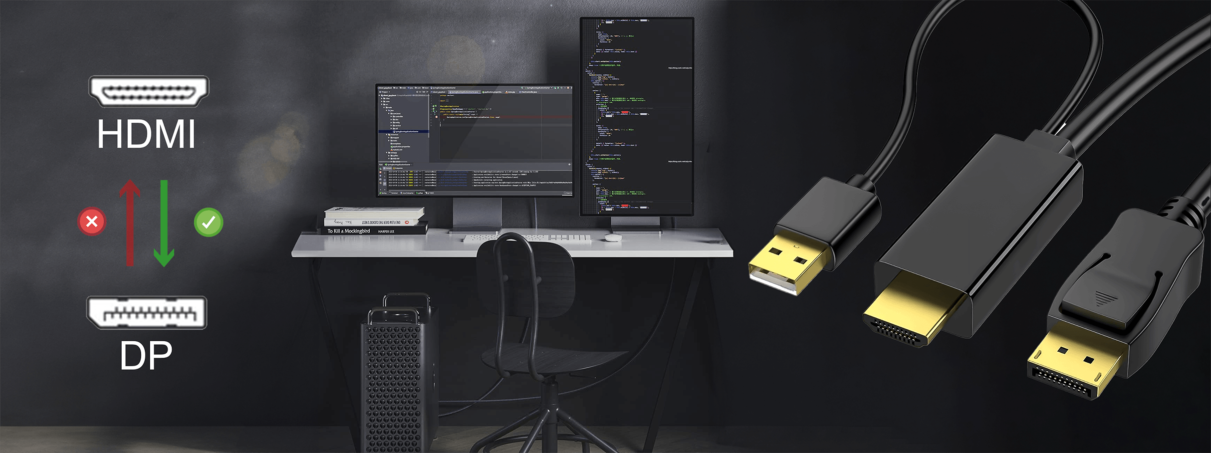 - Jednokierunkowy przesył z HDMI do DisplayPort