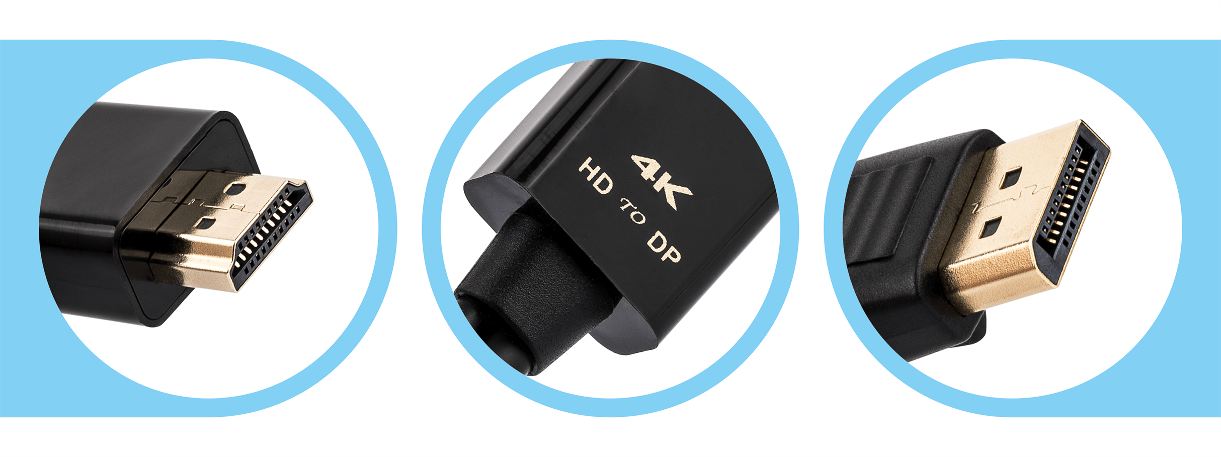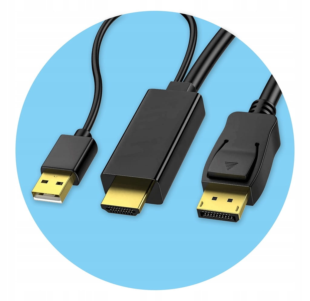 Uwaga: przewód jest jednokierunkowy. Pozwala na wysłanie sygnału ze złącza HDMI do portu DisplayPort.