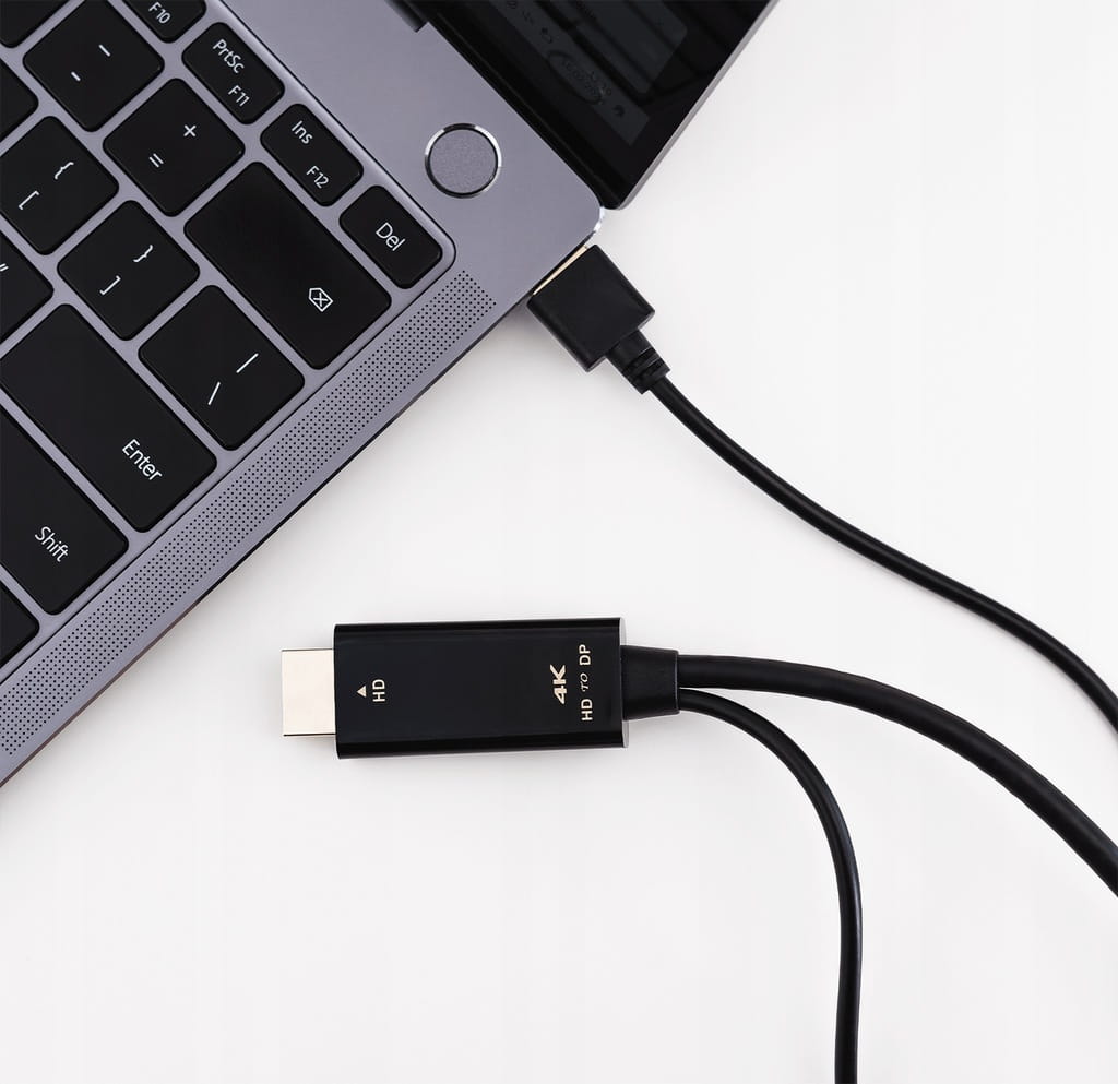 Działanie przewodu w trybie plug and play pozwala na łatwość użytkowania, ponieważ nie musisz instalować sterowników. Wystarczy podłączyć kabel, aby cieszyć się możliwościami, jakie oferuje. Dodatkowe zasilanie przepływa przez USB-A, zintegrowane z resztą przewodu, więc zaoszczędzasz miejsce, nie musząc podłączać dodatkowych kabli. Przy stosowaniu rozdzielczości 4K lub maksymalnych częstotliwości, zalecamy podłączenie do ładowarki sieciowej dla zapewnienia stabilnego działania urządzenia (obraz nie będzie “migał”).