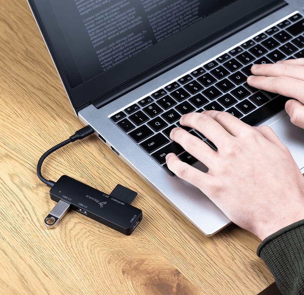 Reagle RHUB52C to aktywny hub UBS-C 5w1 z czytnikami kart SD oraz micro SD