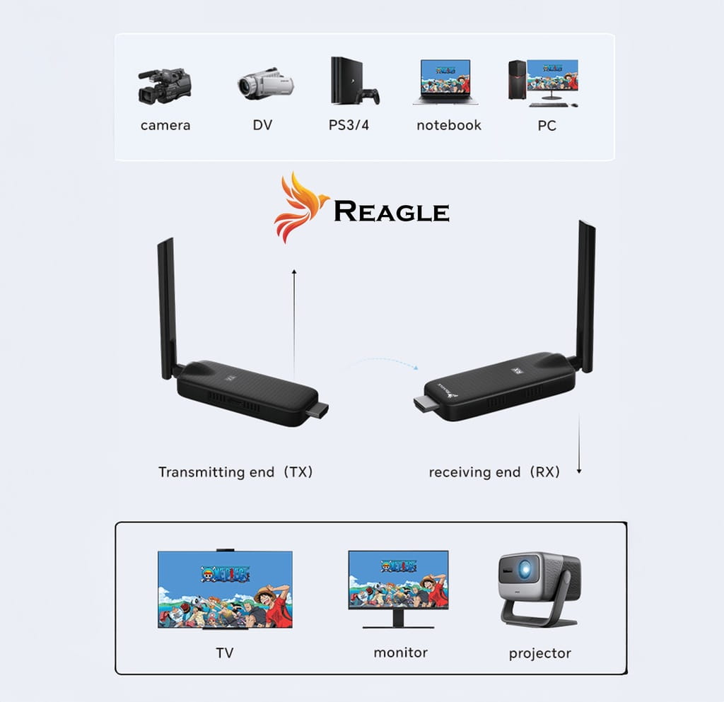 Reagle Bezprzewodowy Transmiter Obrazu HDMI Nadajnik Odbiornik Full HD 60hz 50m Z Anteną