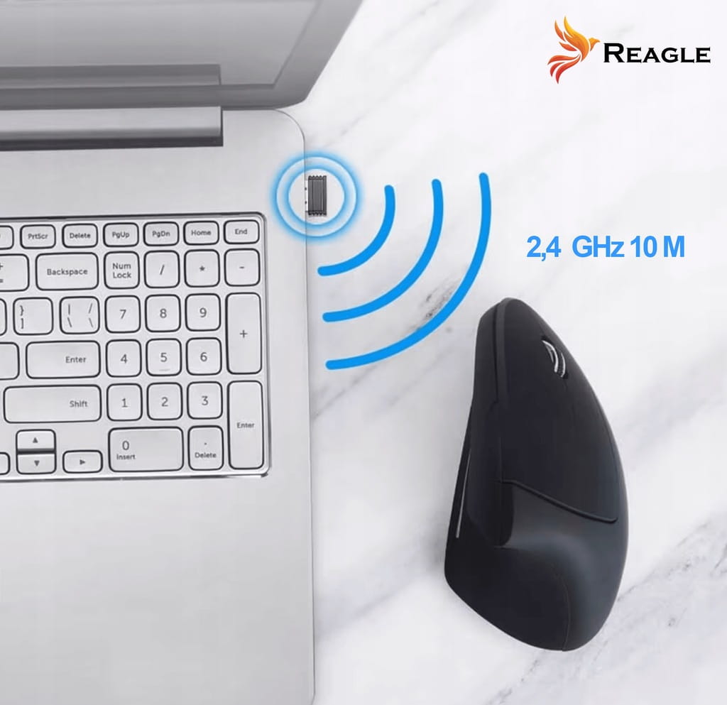 Reagle Ergonomiczna Myszka Bezprzewodowa Pionowa 6 Przycisków, USB Wertykalna