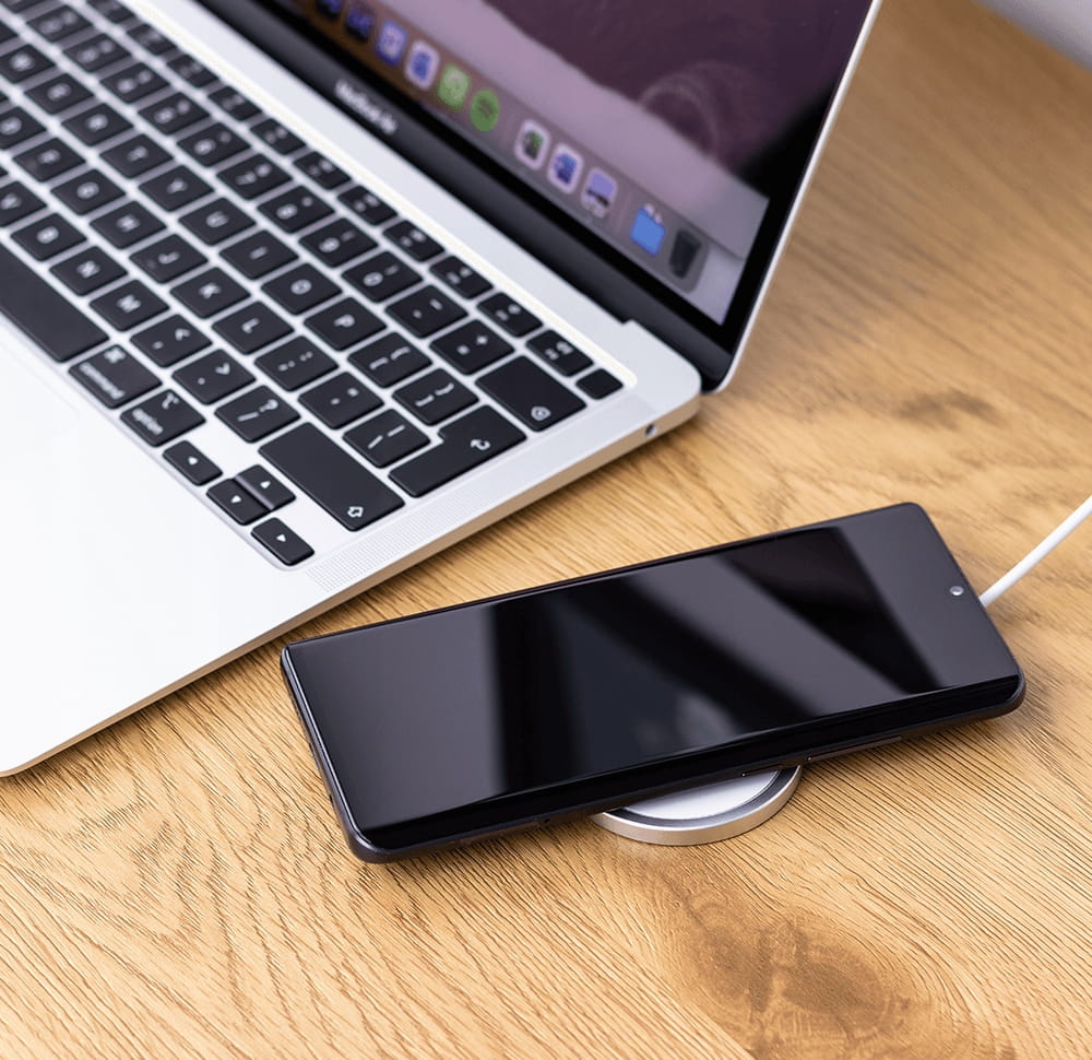 Ładowarka posiada wbudowane magnesy, które utrzymają stabilnie Twój sprzęt na jej powierzchni, by nie zsunął się podczas ładowania. Jej maksymalna moc to 15W, która będzie dostosowana do Twojego urządzenia. Sprawdzi się idealnie, gdy masz w ograniczoną ilość gniazdek elektrycznych lub portów w laptopie - wystarczy podłączyć ją do portu PD, np. w hubie. Oczywiście, możesz ją podłączyć do zasilacza z portem USB-C, by czerpała energię bezpośrednio z gniazdka.