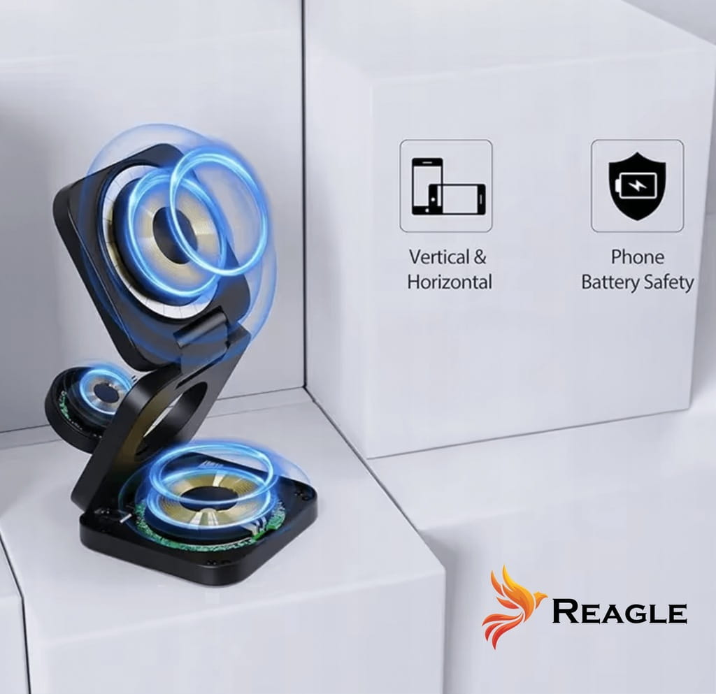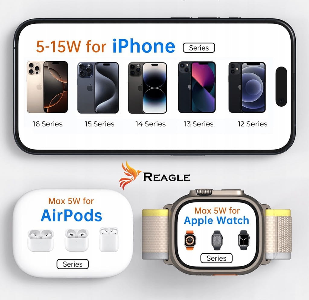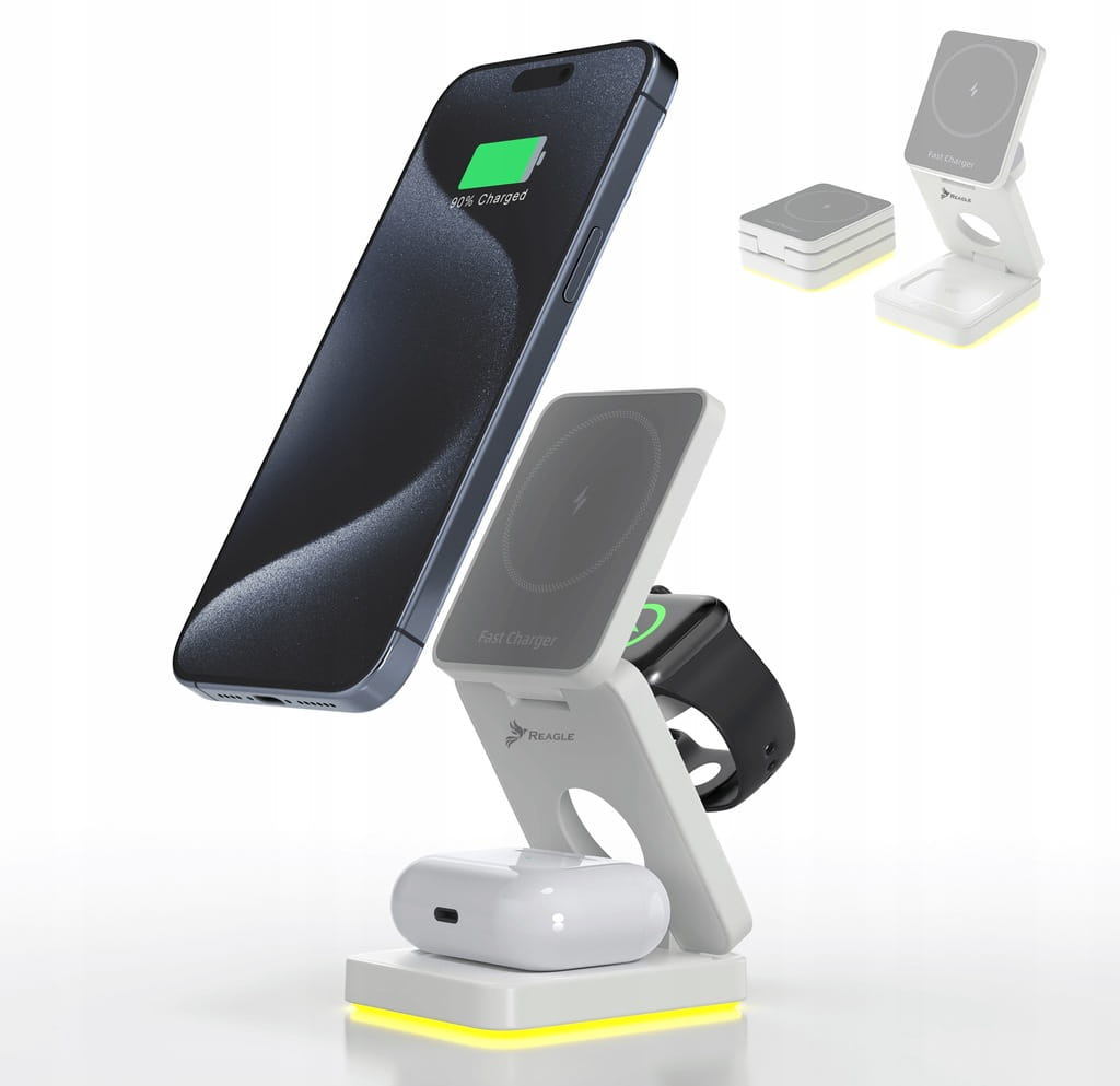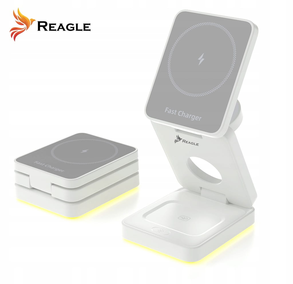 Reagle Składana Ładowarka Indukcyjna 3w1 Magsafe Qi 15w Iphone Airpods Smartwatch Biała