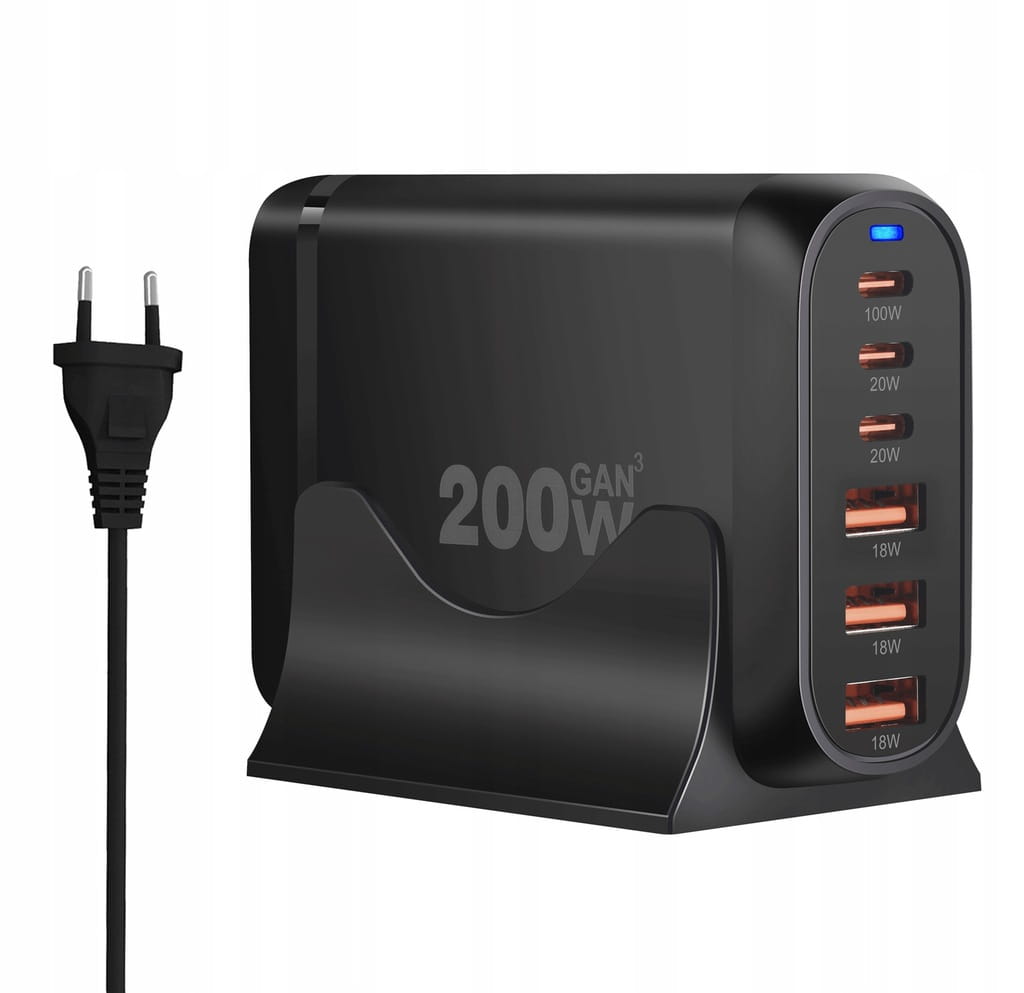 - Łączna moc 200W zapewnia zasilanie dla smartfonów, tabletów i laptopów