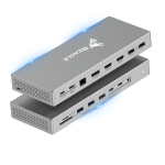 - 16 portów w jednym urządzeniu: PD 100W, PC (USB-C), 2 x HDMI, 1x DP, 2x USB-A 2.0, 2x USB-A 3.2 Gen1, 1x USB-A 3.2 GEN2, 2x Thunderbolt USB-C 3.2 Gen2, micro SD i TF 3.0, audio 3,5 mm, RJ45