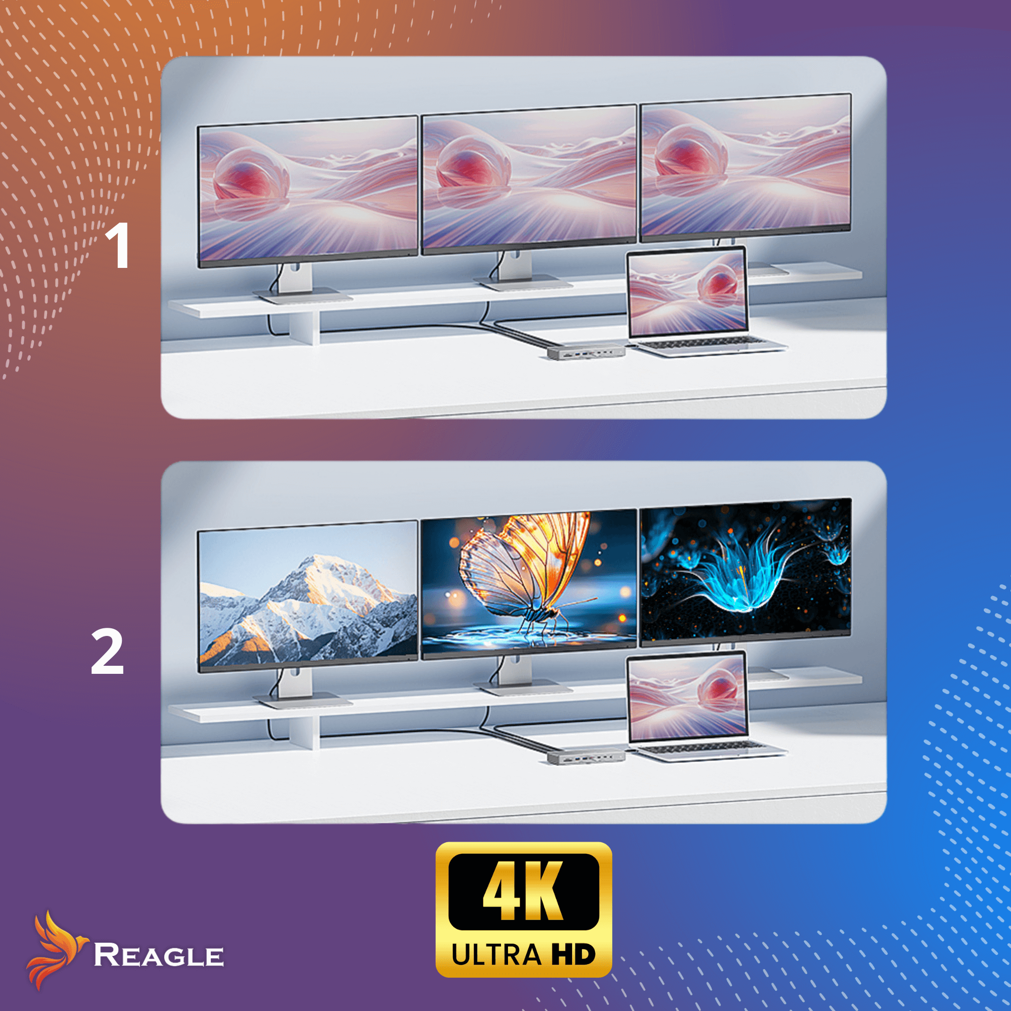 - Obraz Ultra HD 4K@60Hz: idealny do pracy, filmów i gier. Obsługuje do 3 ekranów w 4K i 60Hz każdy! Wspiera HDR i HDCP 2.3
