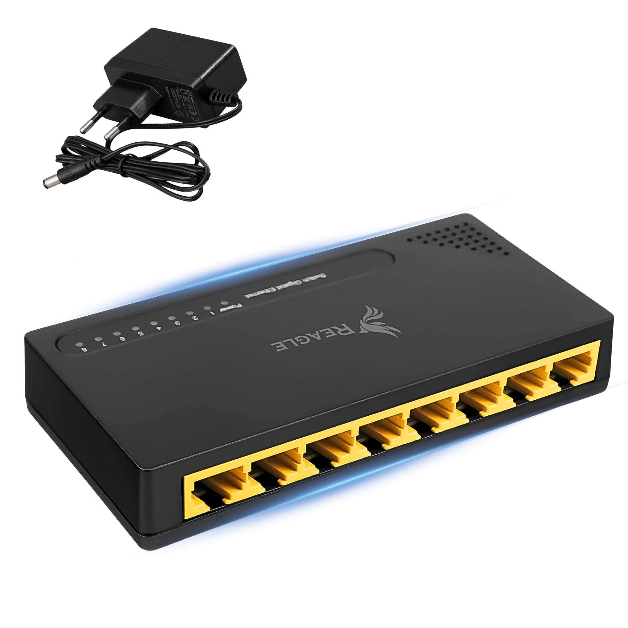 SWITCH ROZDZIELACZ LAN 8 PORTÓW GIGABIT ETHERNET RJ45 1000 Mb DO INTERNETU REAGLE