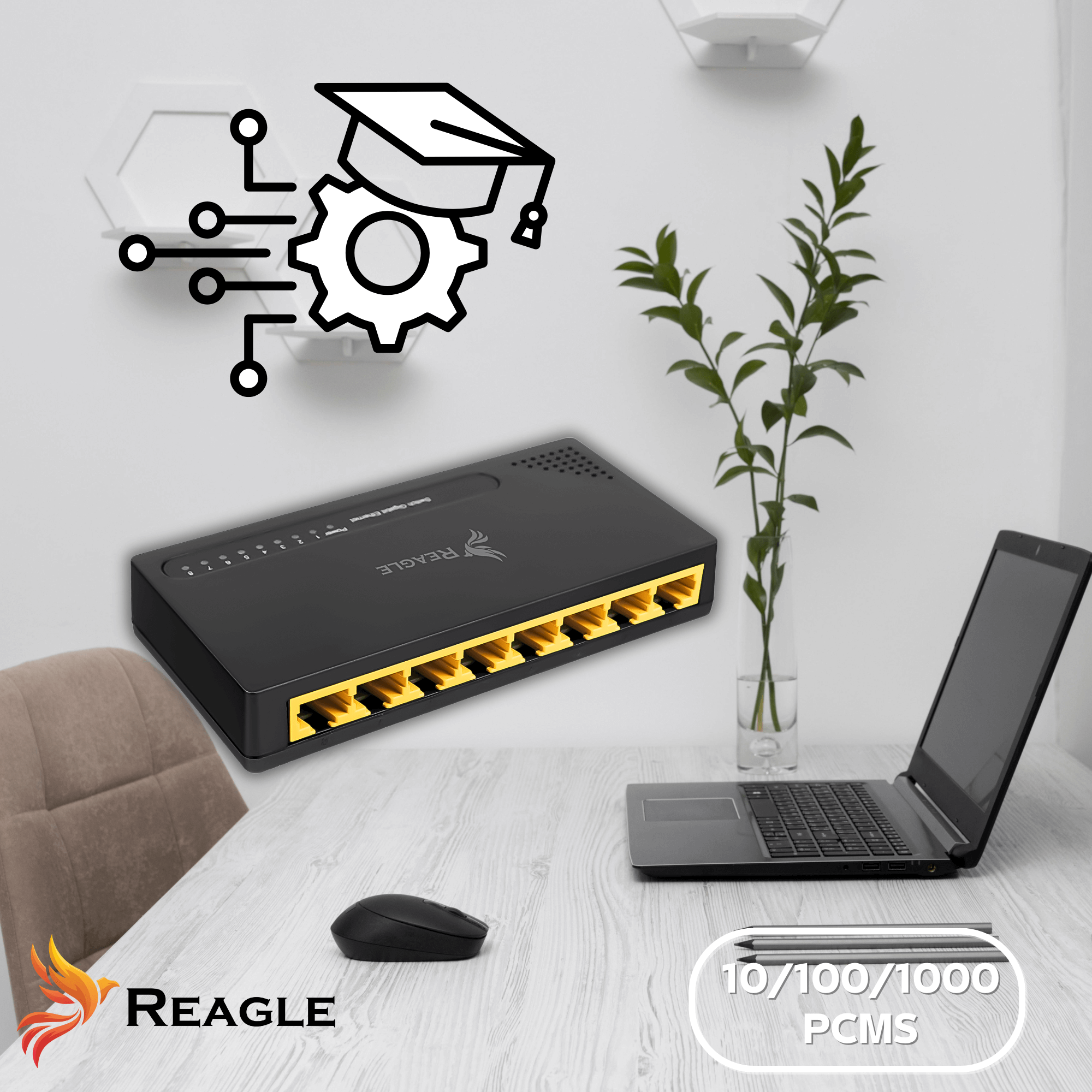 Switch sieciowy Reagle RSWIRJ8 to Twoja brama do stabilnego i szybkiego połączenia internetowego. 8 portów RJ45 pozwoli Ci podłączyć wszystkie urządzenia - komputer, konsolę, smart TV, dekoder i drukarkę - bez kompromisów w prędkości.