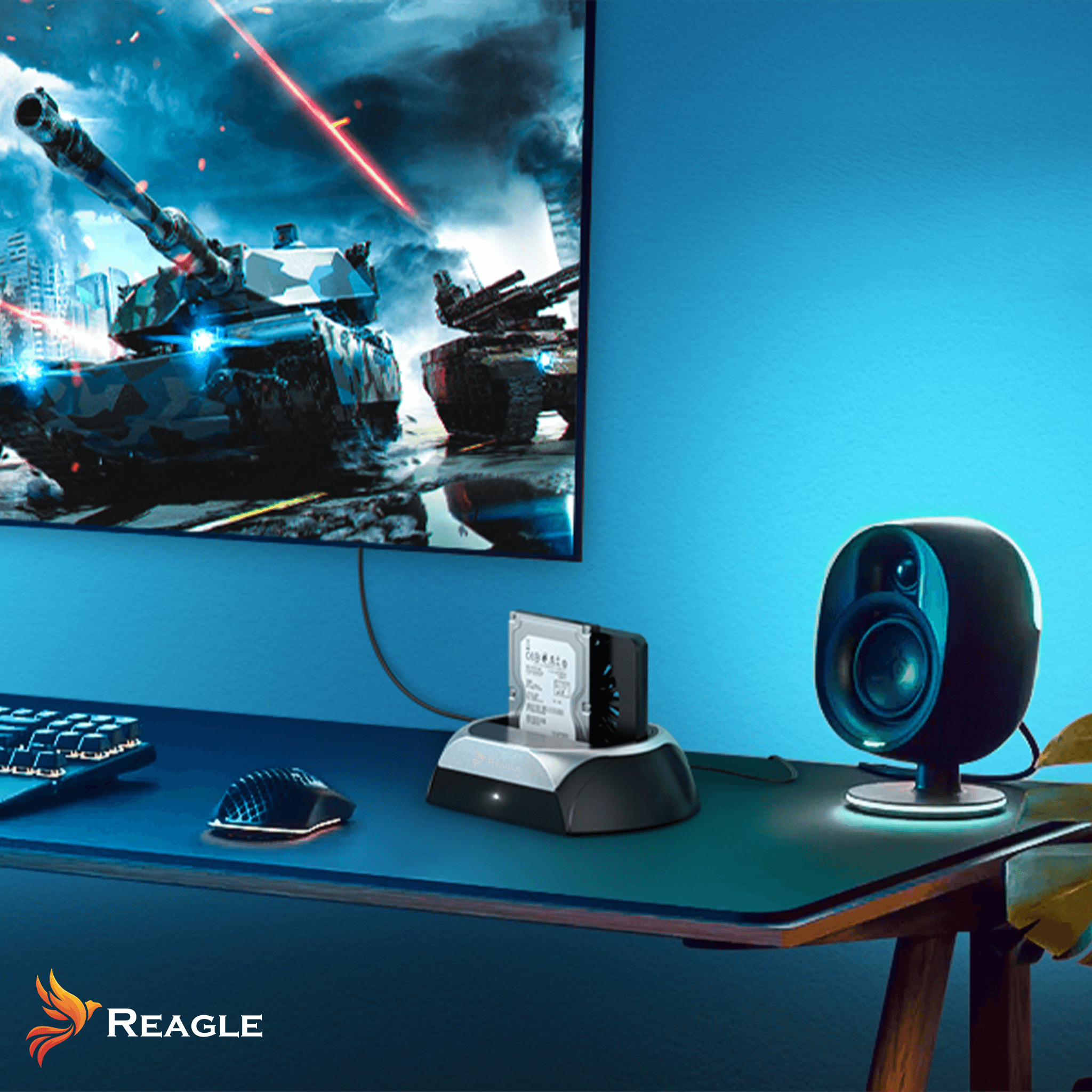 Stacja wykorzystuje interfejs USB 3.2 Gen 1, który oferuje prędkość transferu danych do 5 Gbps – to nawet 10 razy szybciej niż USB 2.0. Dzięki temu przesyłanie dużych plików zajmuje zaledwie kilka chwil. Wykonana z wytrzymałego tworzywa sztucznego, stacja Reagle łączy trwałość z eleganckim designem.