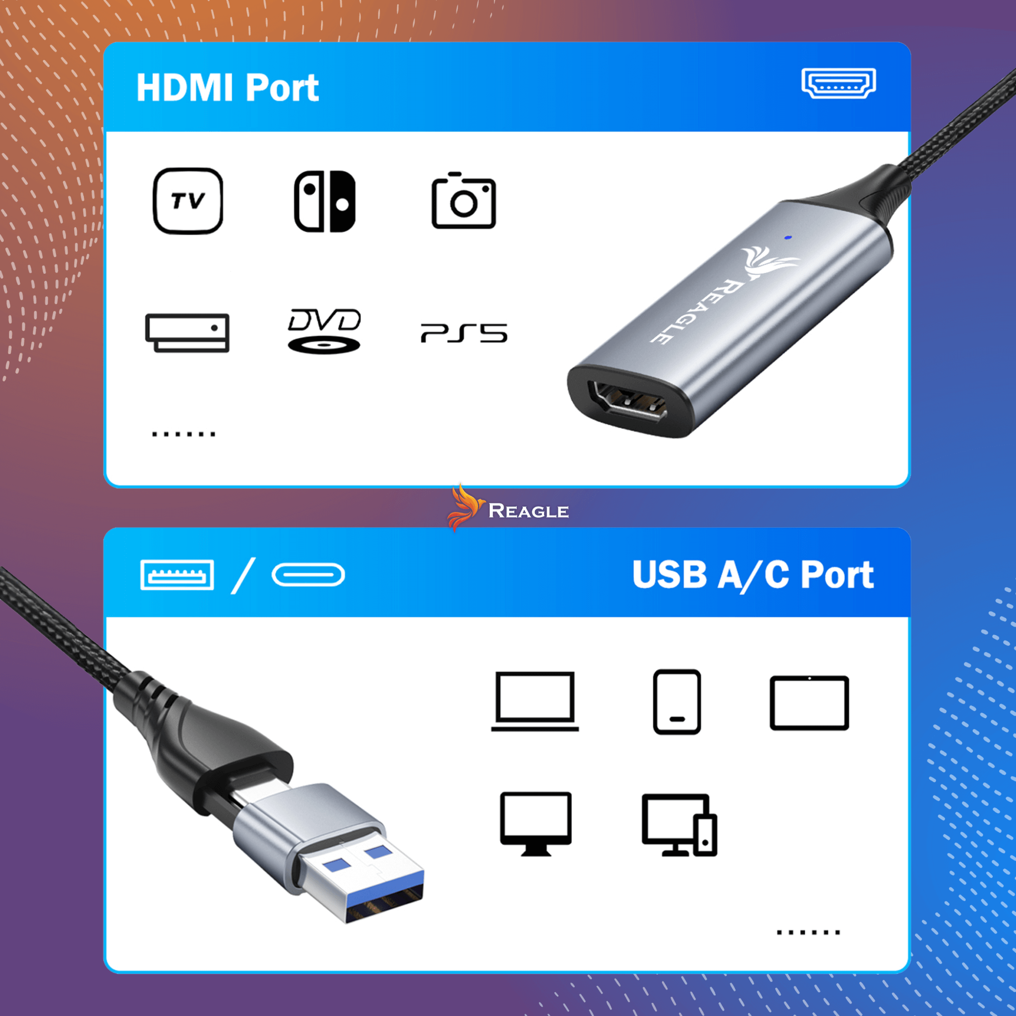 Reagle RYVC2AC to video grabber, który pozwala nagrać dowolny sygnał ze źródła HDMI na dysku komputera bądź laptopa. Umożliwi Ci nie tylko nagranie, ale również transmitowanie na żywo obrazu z takich sprzętów jak aparat, konsola do gier, kamery, smartfony czy TV boxy.