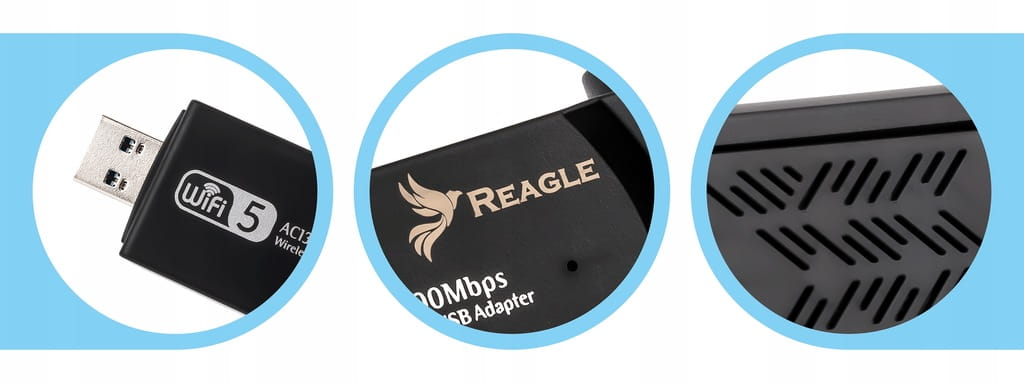 Reagle RYWU3 to zewnętrzny adapter Wi-Fi z wtykiem USB-A.